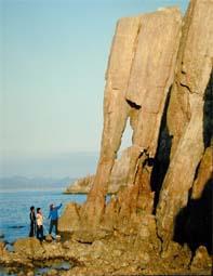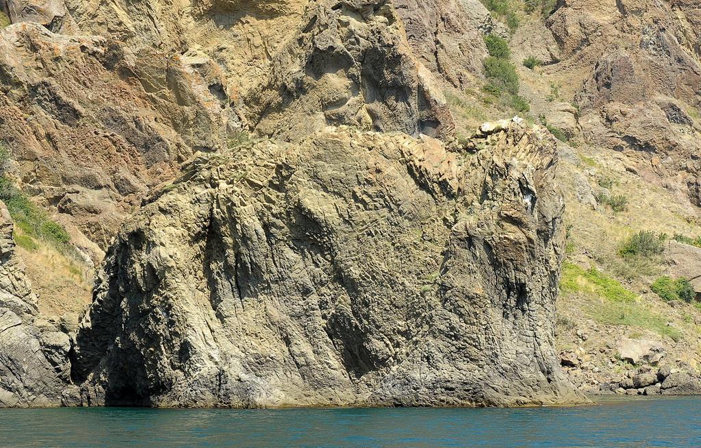 Скала-слон образовался в результате действия морской и ветровой эрозии фельзита.