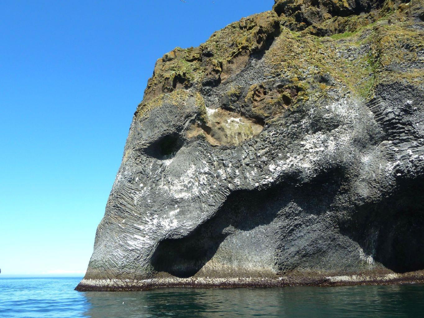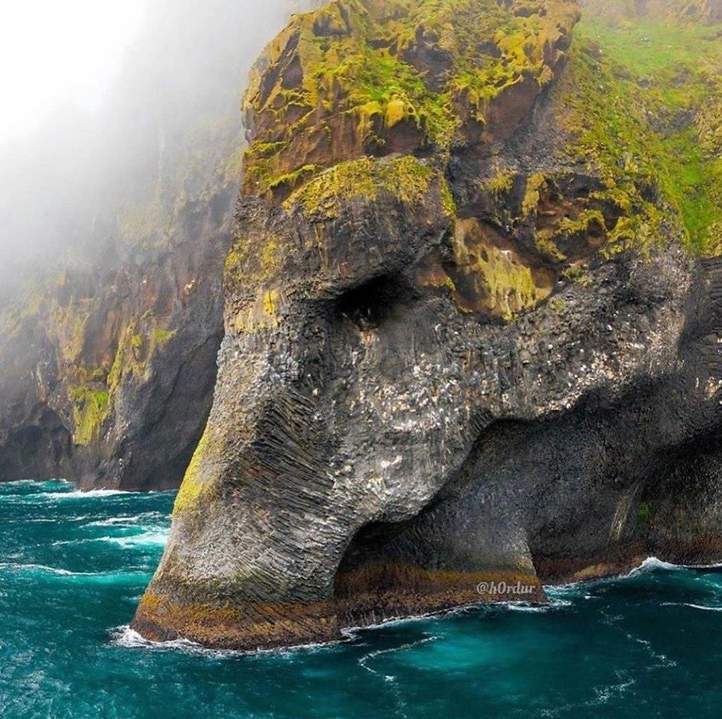Слоновья скала - впечатляющее скальное образование, расположенное на острове Хеймаэй на юго-западе Исландии. Это результат медленной и постоянной эрозии. Море и ветра вырезали скалу на протяжении веков, делая её похожей на большого слона.