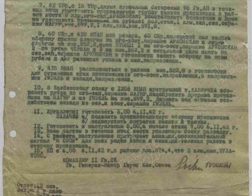 Авторы документа: 11 гв. ск, гв. генерал-майор Рослый
