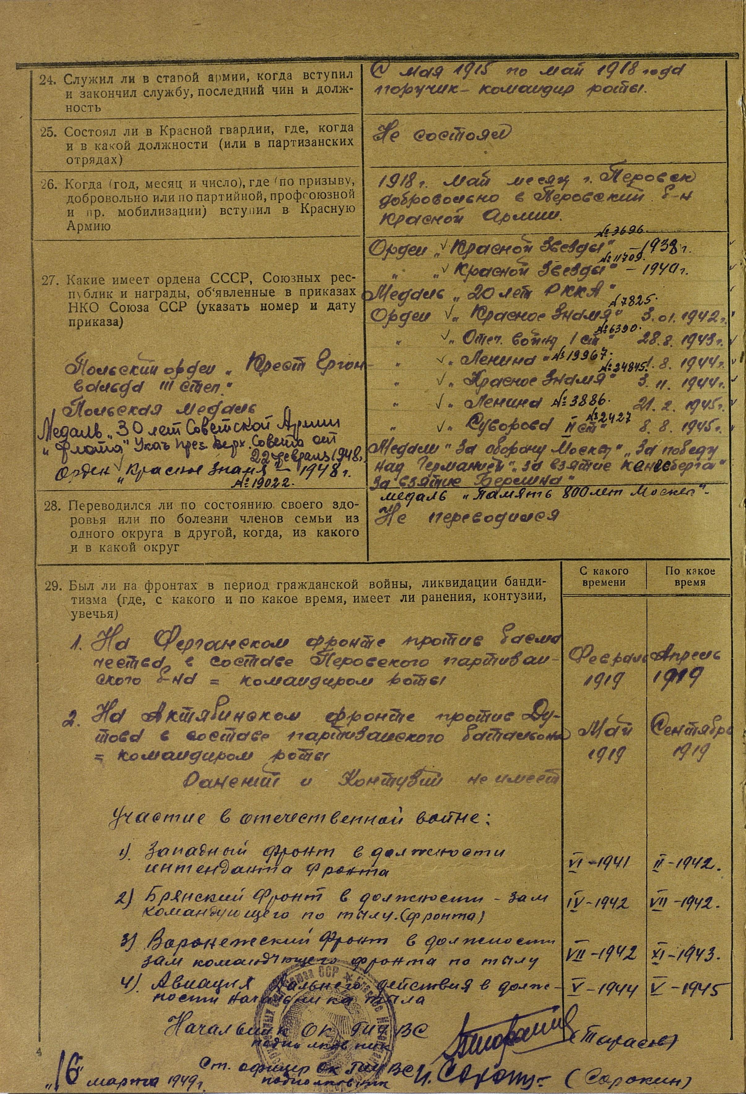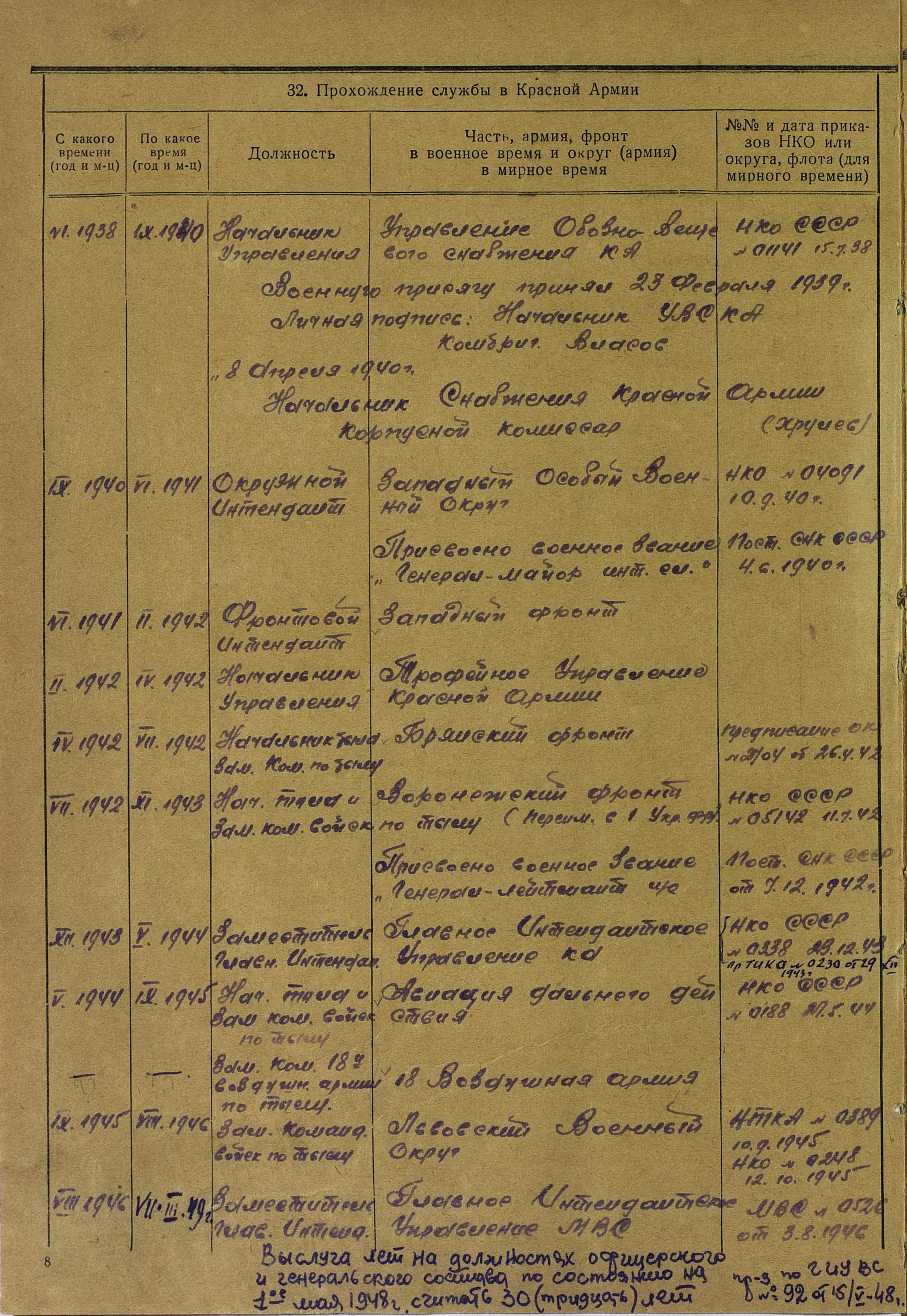 Из личного дела генерал-лейтенанта Власова В.Н. ЦА МО