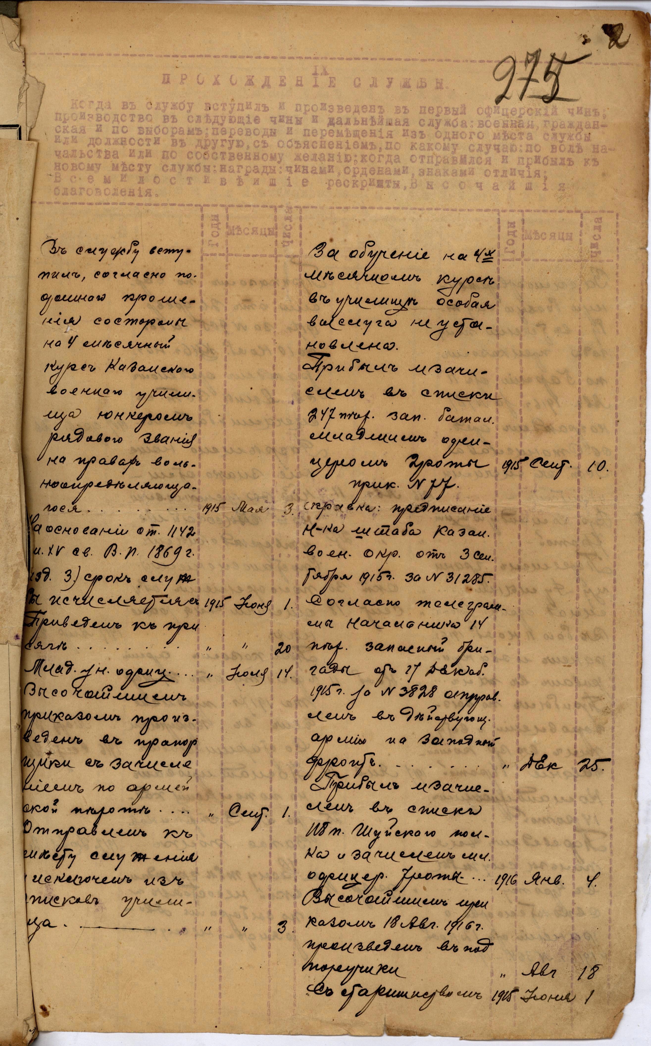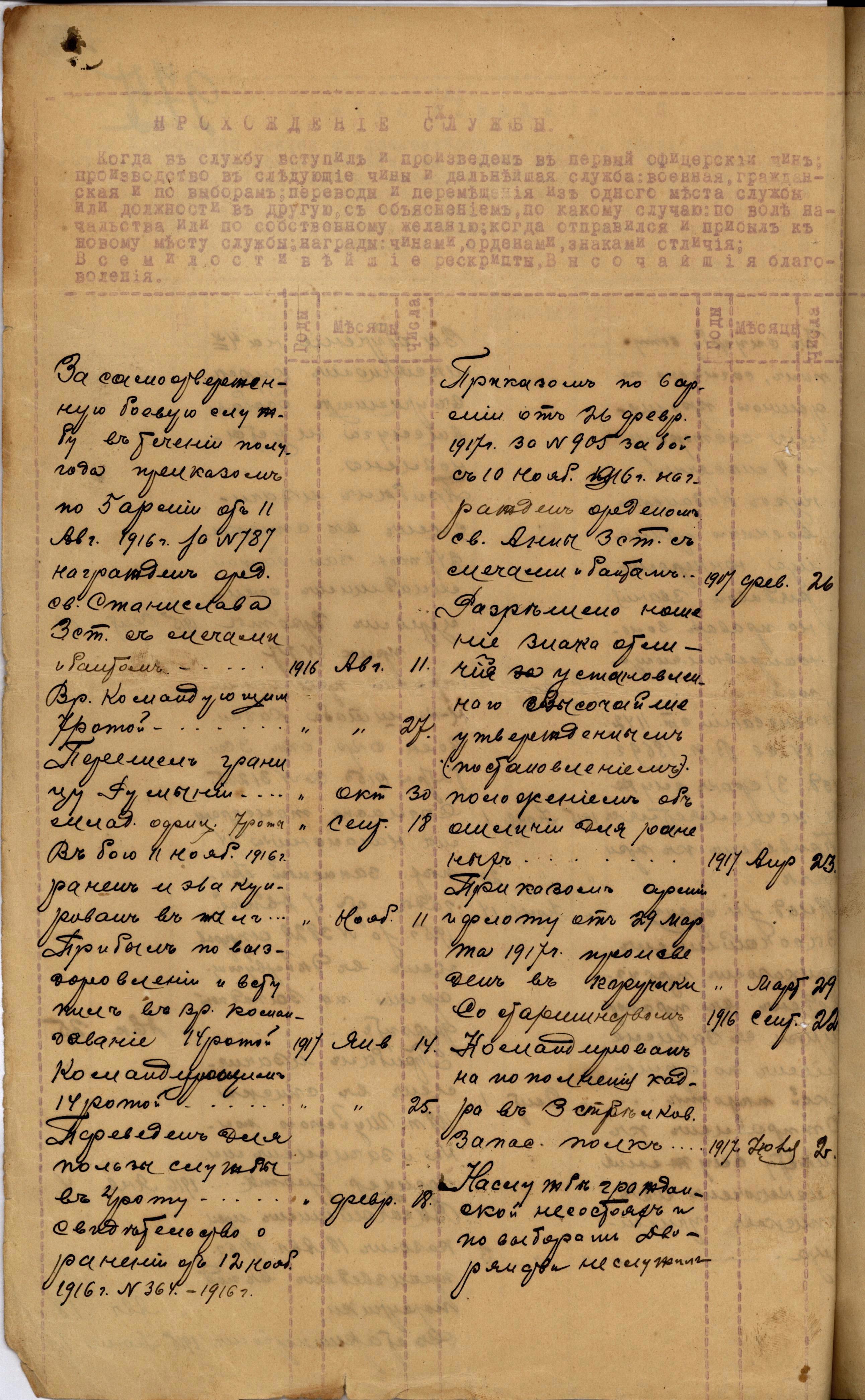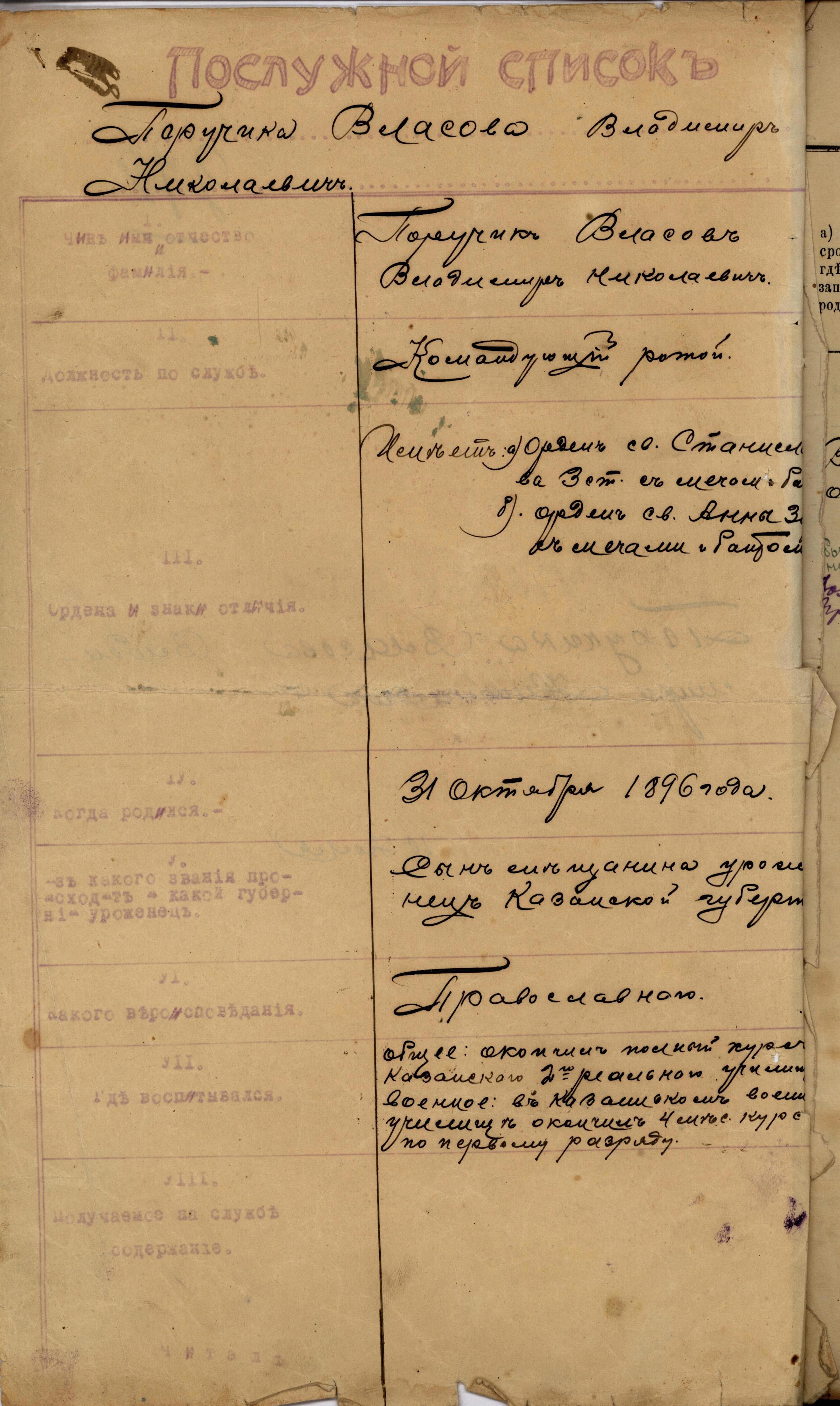 Послужной список поручика Власова В.Н. РГВА. ф. 37976, д. 283-006