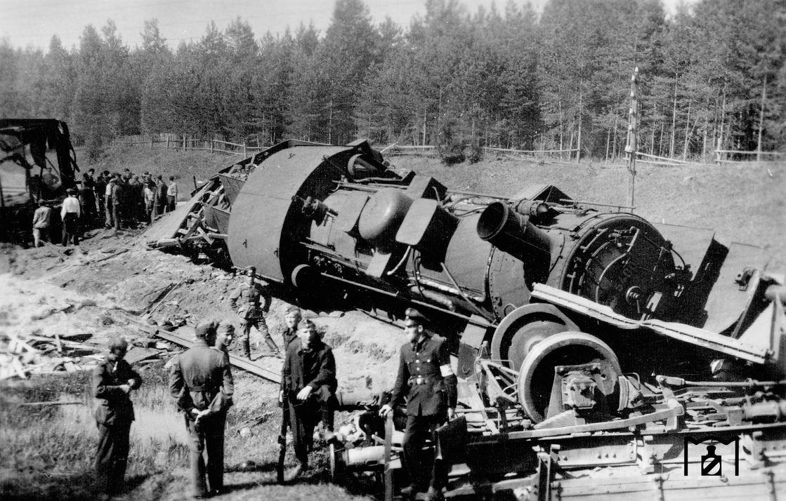 В частности, начиная с 1943 года партизаны в России усилили свои нападения на железнодорожные пути в тылу фронта. Это позволило советской авиации действовать более целенаправленно, бомбя заблокированные поезда перед местами взрывов. Так случилось 4 мая 1943 года в Орше, когда сгорело 300 вагонов с бронетехникой. В апреле 1943 года было совершено 626 нападений на железнодорожные пути, особенно на линии Минск–Гомель. В мае 1943 года группа армий "Центр" насчитала 765 атак. Только между Гомелем и Жлобином партизаны повредили 35 локомотивов и 106 вагонов в результате 69 взрывов. В июне 1943 года произошел 841 теракт, в результате которого были выведены из строя 298 локомотивов, 1222 вагона и 44 моста. (1943) Foto: Privatfoto