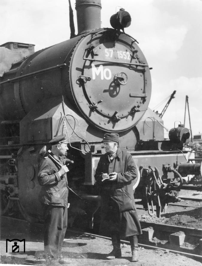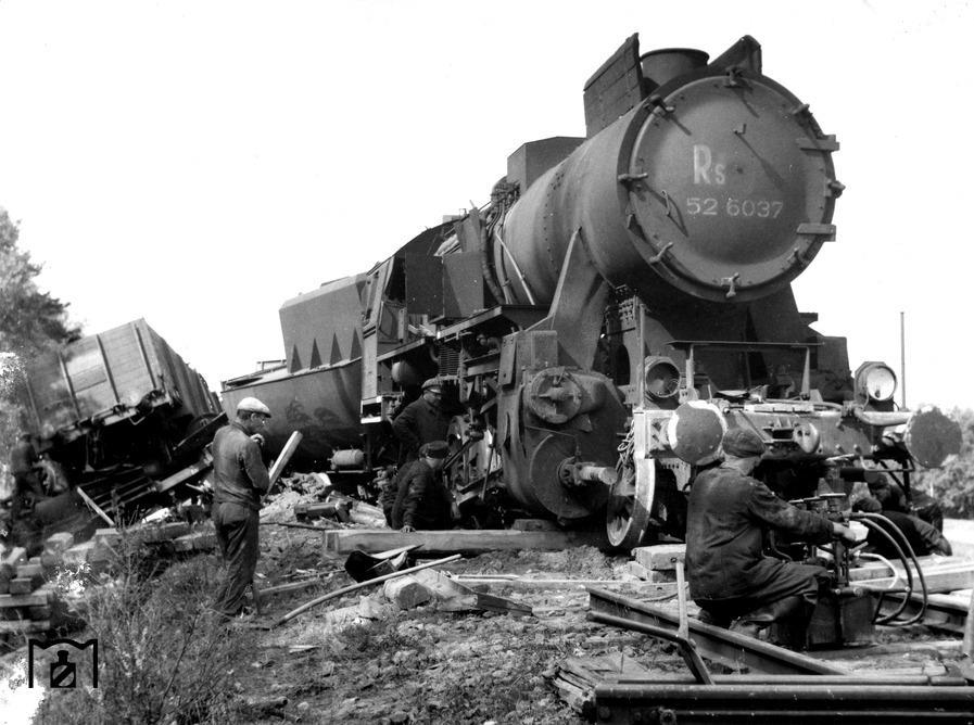 52 6037 прибыл из Берлина на восток только в июне 1943 года. Вскоре после этого он уже стал жертвой партизанского нападения в Литве (Rs = Radsviliskis / Литва). В 1945 году локомотив был найден в американской зоне, но в том же году передан в советскую зону и, наконец, внесен в список Польских государственных железных дорог как Ty 2-634. (1943) Foto: RVM (Korte)