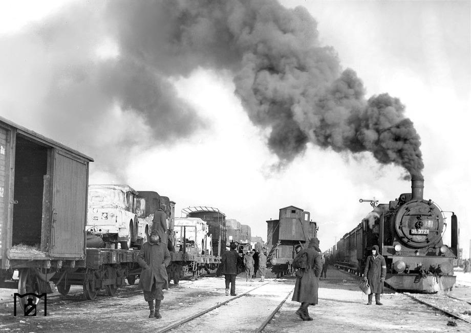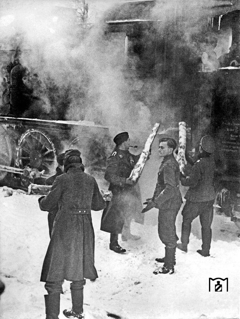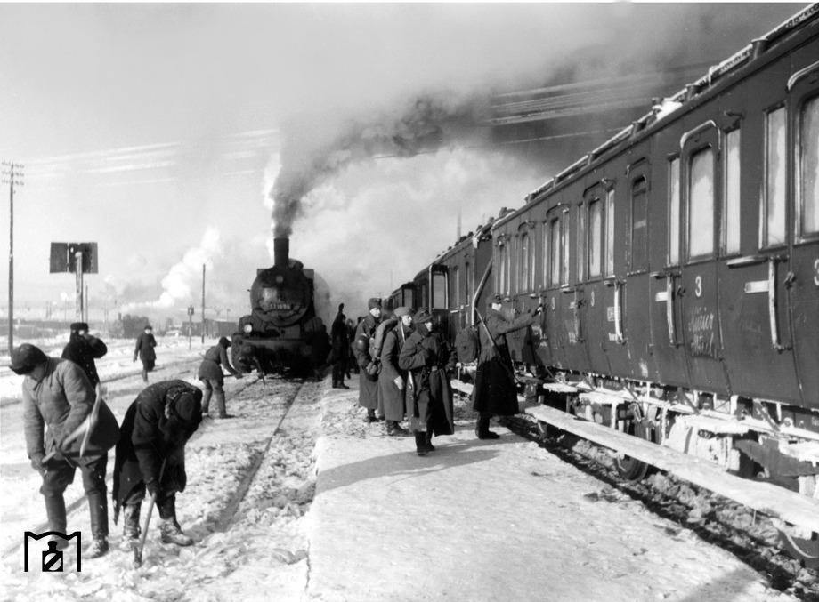 В то время как сегодня мы говорим только об экстремальном лете, зима 1941/42 года полностью вышла из-под контроля. В ноябре 1941 года в Москве было уже минус 20 градусов - это было примерно на 15 градусов холоднее, чем обычно. По всей территории российской зоны боевых действий наблюдались температуры ниже минус 40 градусов. С немецкой стороны этого никто не ожидал. Планировалось доставить немецкие войска и пополнение по железной дороге к определенным разгрузочным станциям, чтобы затем на крупных грузовиках переправить их непосредственно к линии фронта. Благодаря – до сих пор - успешной стратегии „блицкрига“ руководство вермахта считало, что российская железнодорожная сеть остается здоровой, а отстающие „синие“ и „серые“ железнодорожники найдут исправное железнодорожное оборудование и исправный подвижной состав, такие как локомотивы и вагоны. И то, и другое оказалось серьезным заблуждением. Локомотивы, привезенные тогда из Рейха, не подходили для дальних перевозок; таких материалов, как вода и уголь, было недостаточно для преодоления больших расстояний, а немецкие паровозы не подходили для русской широкой колеи. Когда сотрудники оперативного управления Ост затронули вопрос обеспечения безопасности на зиму, им дали понять, что кампания закончилась до Рождества и что больше никаких специальных транспортных задач на железной дороге не будет. Зимой выходило из строя до 70% локомотивов. "Добровольная" помощь местных жителей, как на этом снимке, тоже не помогла. (1941) Foto: Privatfoto