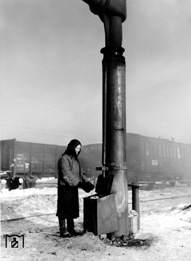 Также ка и в оккупированной Украине местным женщинам приходилось работать на железной дороге. К счастью, раскаленные угли для подогрева водопроводного крана в Минске годились и для разогрева рук. (1943) Foto: RVM (Bandelow)