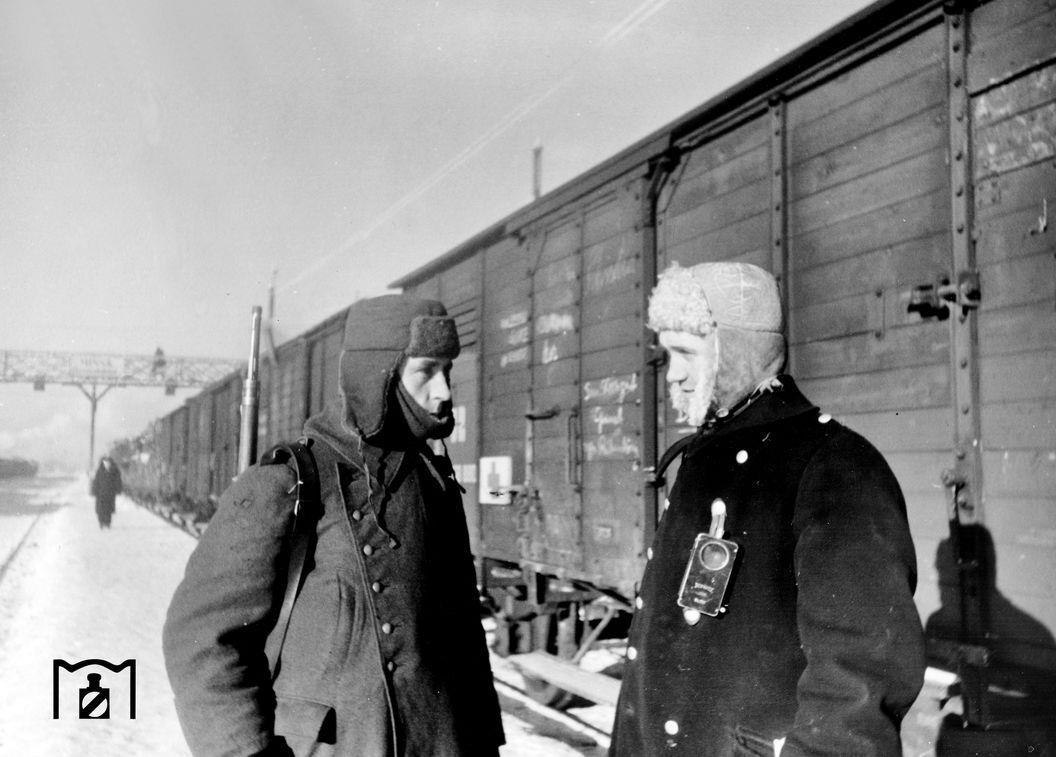 Железнодорожник и вооруженный сопровождающий на станции Минск.(1942) Foto: RVM (Bandelow)