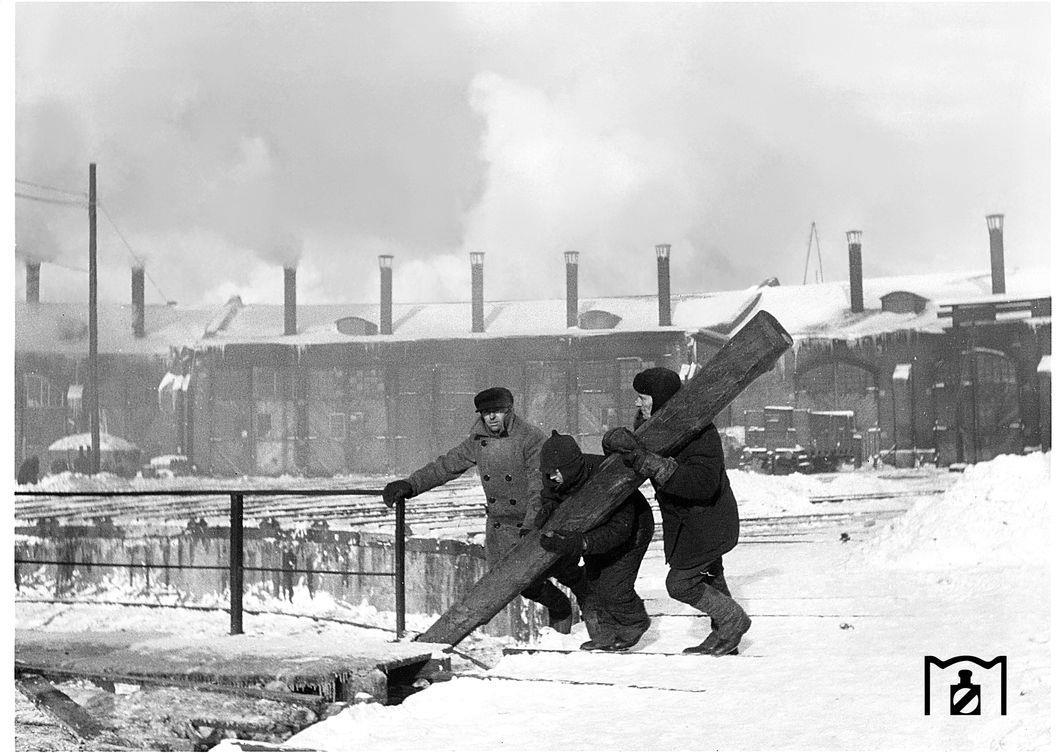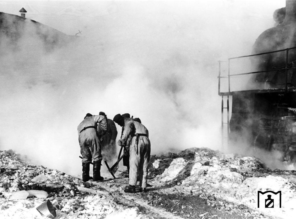 Нехватка угля зимой 1941/42 г. привела к неэффективному методу сжигания древесины в качестве заменителя угля. Фото в Минске. (1942) Foto: RVM (Luben-Orbis)