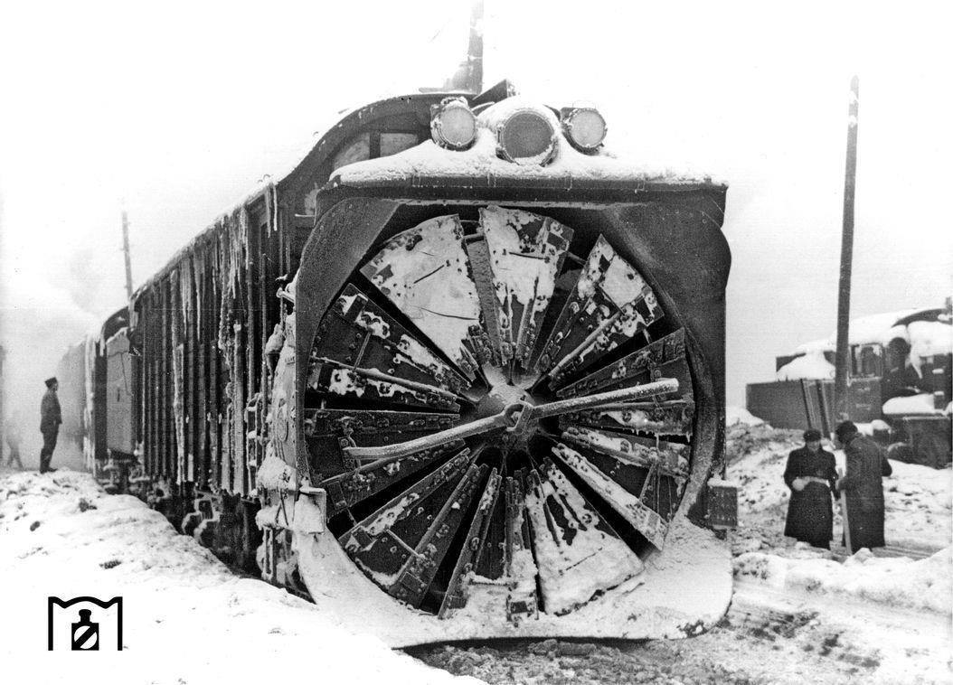 В суровую русскую зиму 1941/42 года даже паровые снегоуборочные машины, доставленные из Германии, как и здесь, на станции Минск, с трудом поддерживали работу железных дорог. В суровую зиму 1941/42 года Рейхсбан потерял до 80% своих обычных перевозок, поэтому ей приписывали большую долю провала немецкого наступления, в том числе на политическом уровне. (1942) Foto: RVM (Donath)