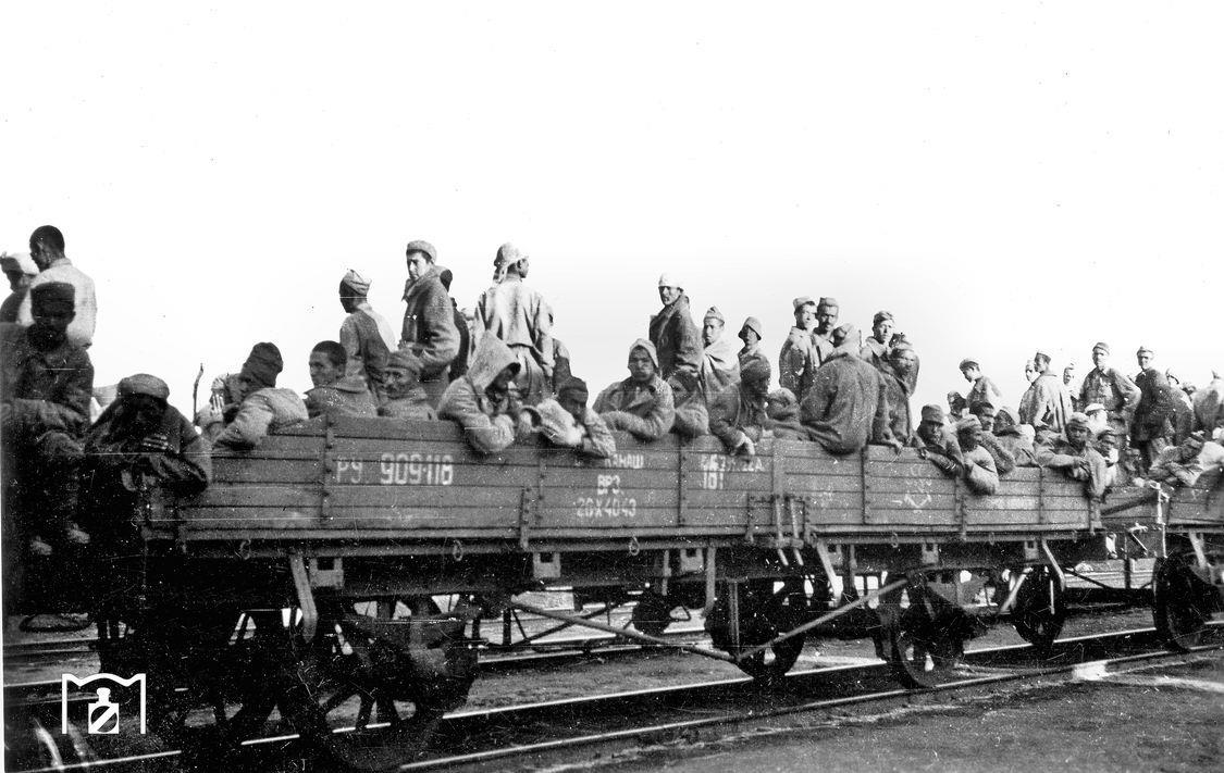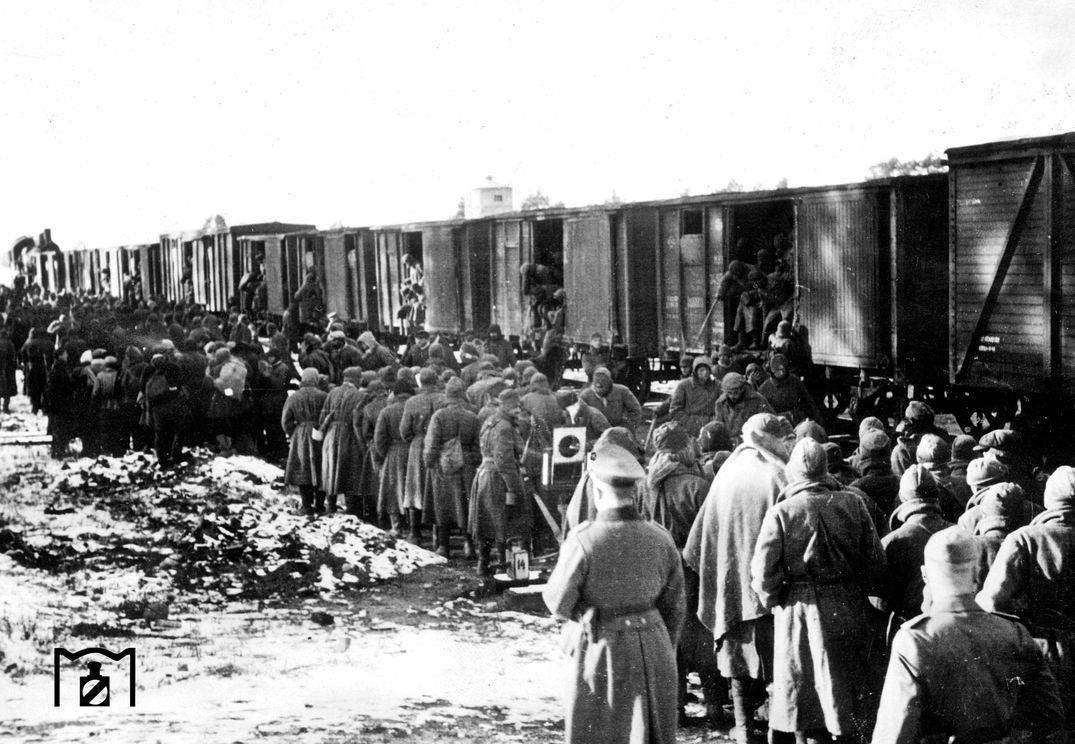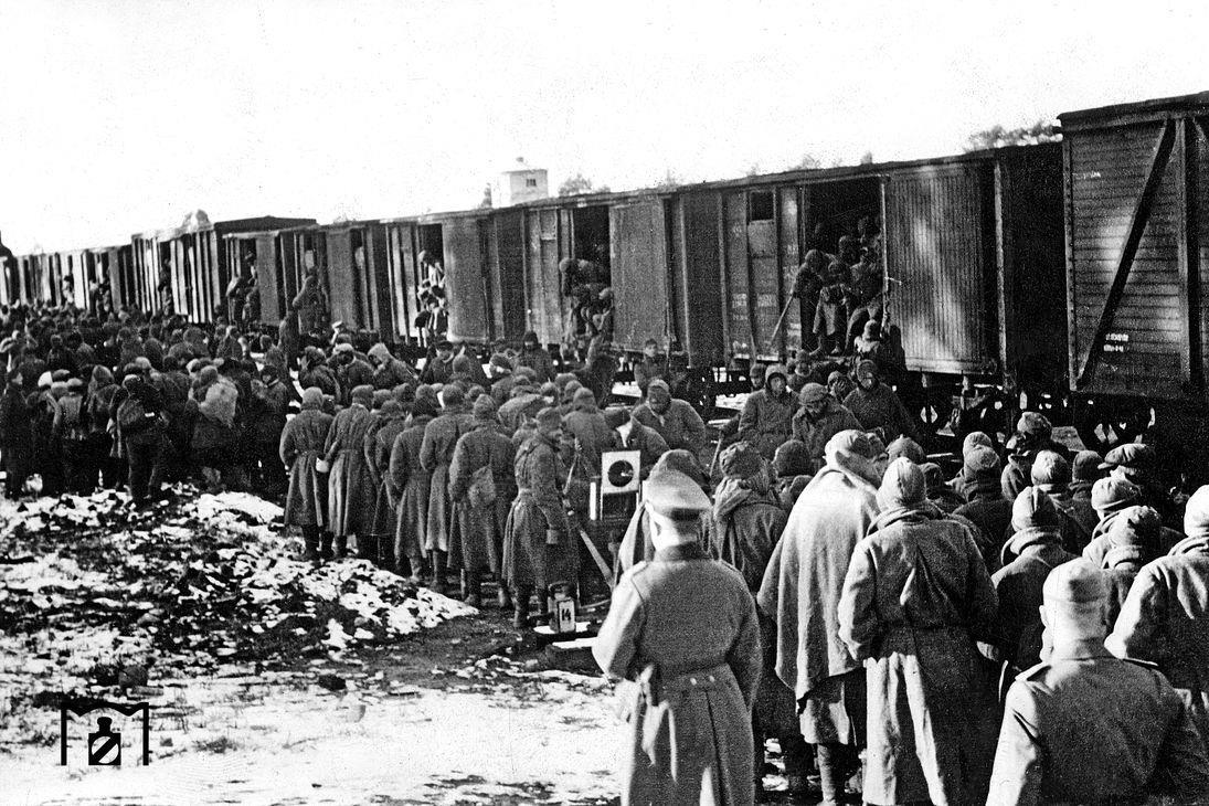 Русские солдаты на станции Гомель по пути в плен. К концу Второй мировой войны все изменилось, и уже немецкие военнопленные были интернированы в лагере для военнопленных 189 в Гомеле. (1941 г.). Foto: RVM (Scherl)