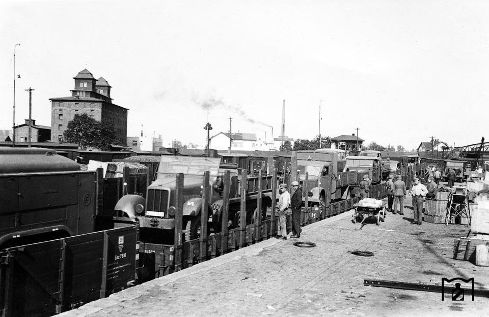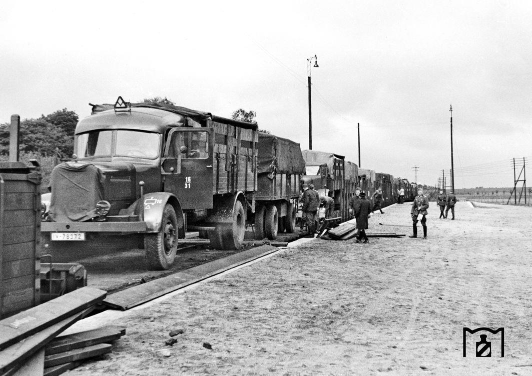 Накануне Второй мировой войны гражданские автомобили, которые были призваны в Вермахт, были загружены на границе с Польшей. Несмотря на то, что грузовики уже имеют тактические обозначения, они еще не имеют опознавательных знаков Вермахта. (08.1939) Foto: RVM (Schuster)
