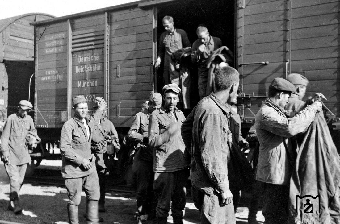 22 июня 1941 года германский вермахт начал войну против Советского Союза. В то время как часть населения приветствовала немецких солдат как освободителей от большевизма и возлагала осторожные надежды на оккупантов, в рамках концепции "жизненного пространства на Востоке" правительство Рейха намеревалось экономически разрушить эти районы и подвергнуть население голодной смерти, выселению или принудительному труду. Первыми это почувствовали советские военнопленные. В течение нескольких месяцев два миллиона из 3,35 миллиона заключенных, захваченных к концу 1941 года, умерли от истощения в результате недостаточного питания, отсутствия медицинской помощи и отсутствия защиты от жары и холода. Использование советских военнопленных для работы в Рейхе изначально не предусматривалось. Расово-идеологические причины и страх перед распространением большевистских идей противостояли этому, особенно со стороны органов безопасности и Высшего командования Вермахта. Только когда стало очевидно, что война на Востоке затянется из-за ранней зимы 1941 года и ее замедленного продвижения вперед, и когда части немецкой экономики угрожала стагнация из-за вновь резко возросшей нехватки рабочей силы, военнопленные были предназначены для использования в Рейхе и получили за это повышенные продовольственные пайки, "взвинченные", как это называлось на административном языке. Плохое обращение в Рейхе и тяжелые работы, особенно в военной и горнодобывающей промышленности, которые с тех пор выполняли советские военнопленные, должны были стоить жизни еще 1,3 миллионам солдат до конца войны (источник: Bundesarchiv. (03.11.1941) Foto: RVM