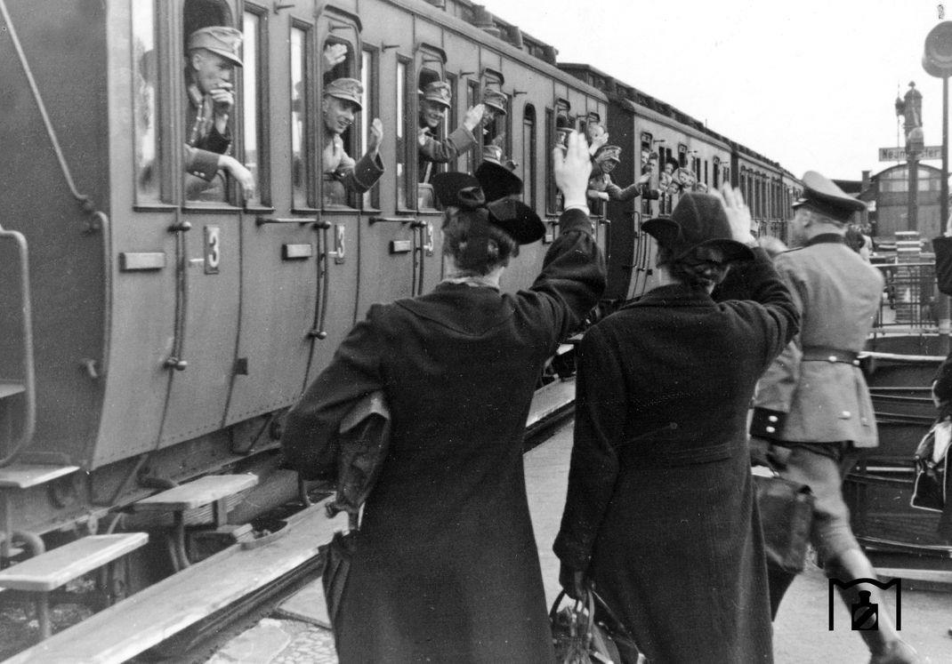Проводы полицейского батальона на железнодорожной станции Ноймюнстер в Шлезвиг-Гольштейне. (1942) Foto: Privatfoto