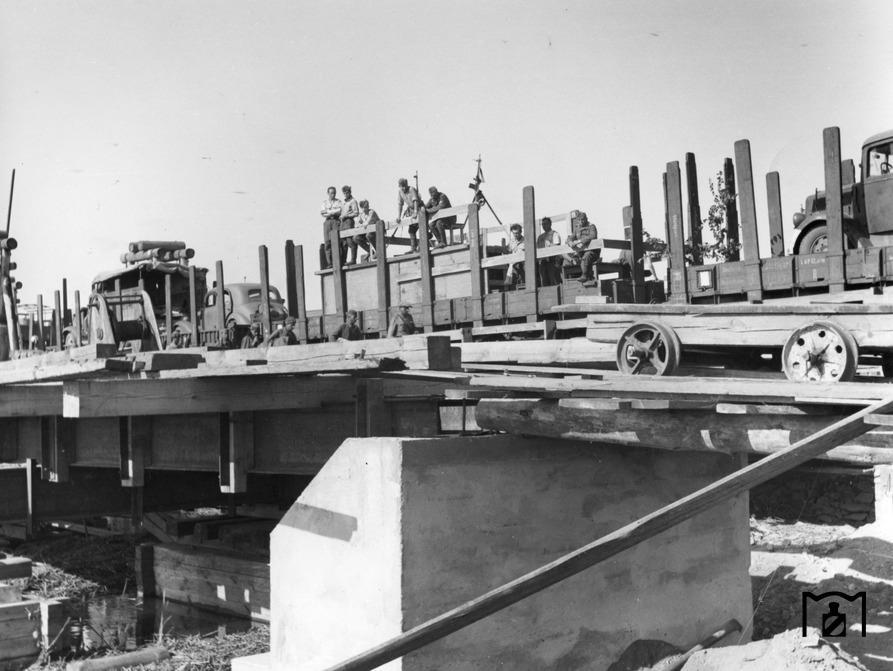 Военный транспорт проезжает по прочно построенному временному мосту где-то в Беларуси. (1942) Foto: RVM (Korte)