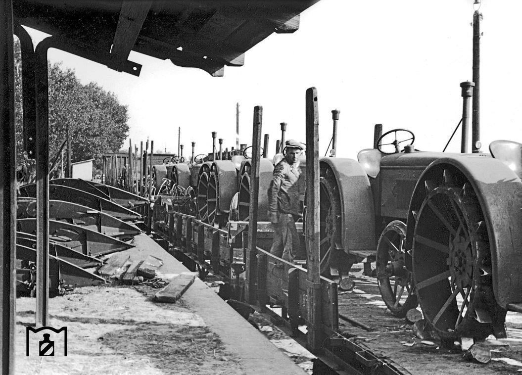Немецкие тракторы "Ханомаг" под присмотром немецкого офицера вермахта охраняются от наступающих советских войск на железнодорожной станции Карловка (укр. Карловка), в 47 км к востоку от Полтавы, на участке через Константиноград в Лозовую. (12.09.1943 г.) Foto: RVM (Wolff-Altvater)