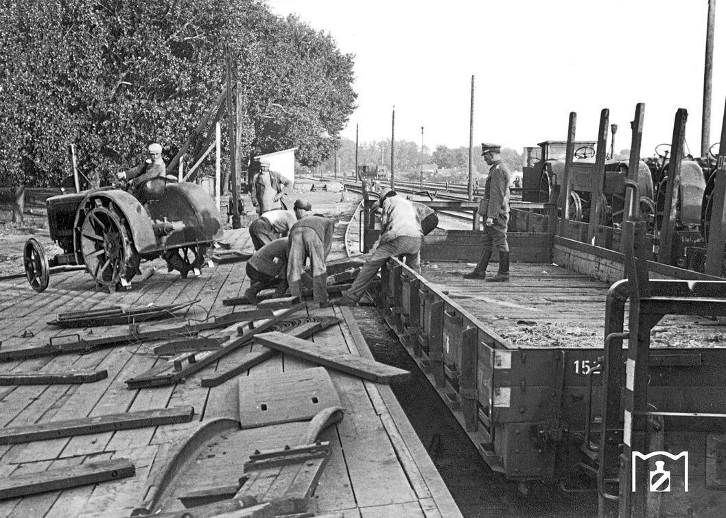 Репатриация немецких тракторов "Ханомаг" на железнодорожной станции Карловка недалеко от Полтавы в Украине перед наступающей Красной Армией. (12.09.1943 г.) Foto: RVM (Wolff-Altvater)