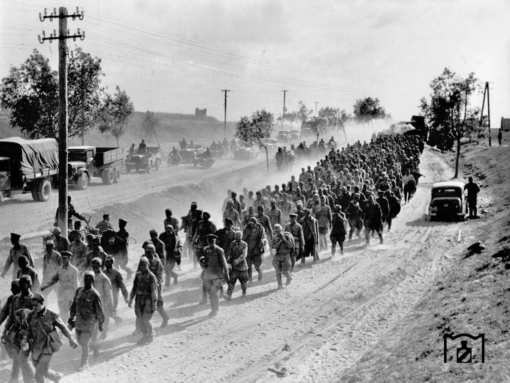Русские военнопленные на пути в неопределенное будущее. В период с 1941 по 1945 год более 5 миллионов советских солдат попали в немецкий плен, 3,3 миллиона из них погибли. (1941) Foto: RVM (Scherl)