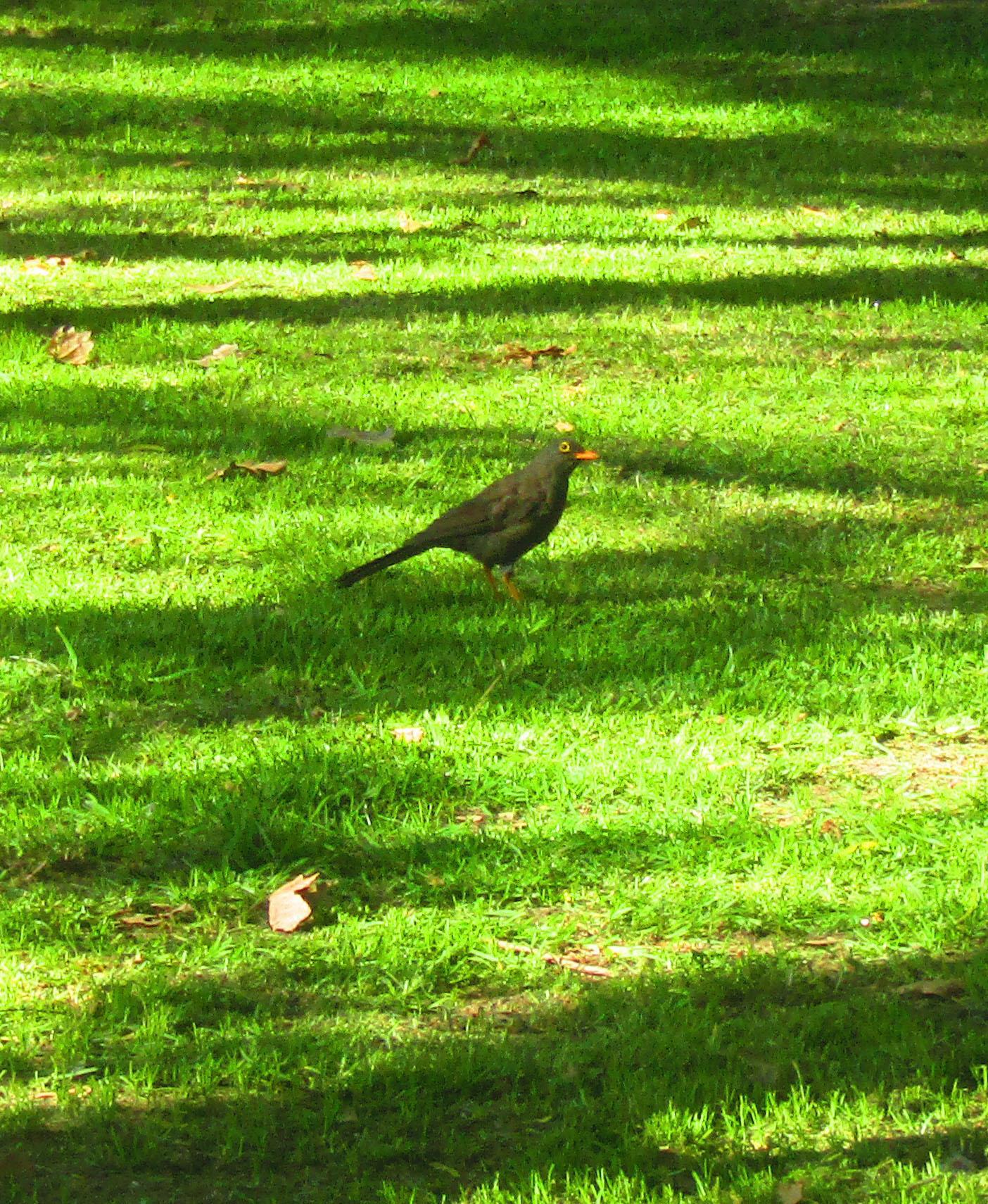 В парке был обнаружен местный... не знаю кто, но предположительно дрозд. У нас на побережье такие не водятся.