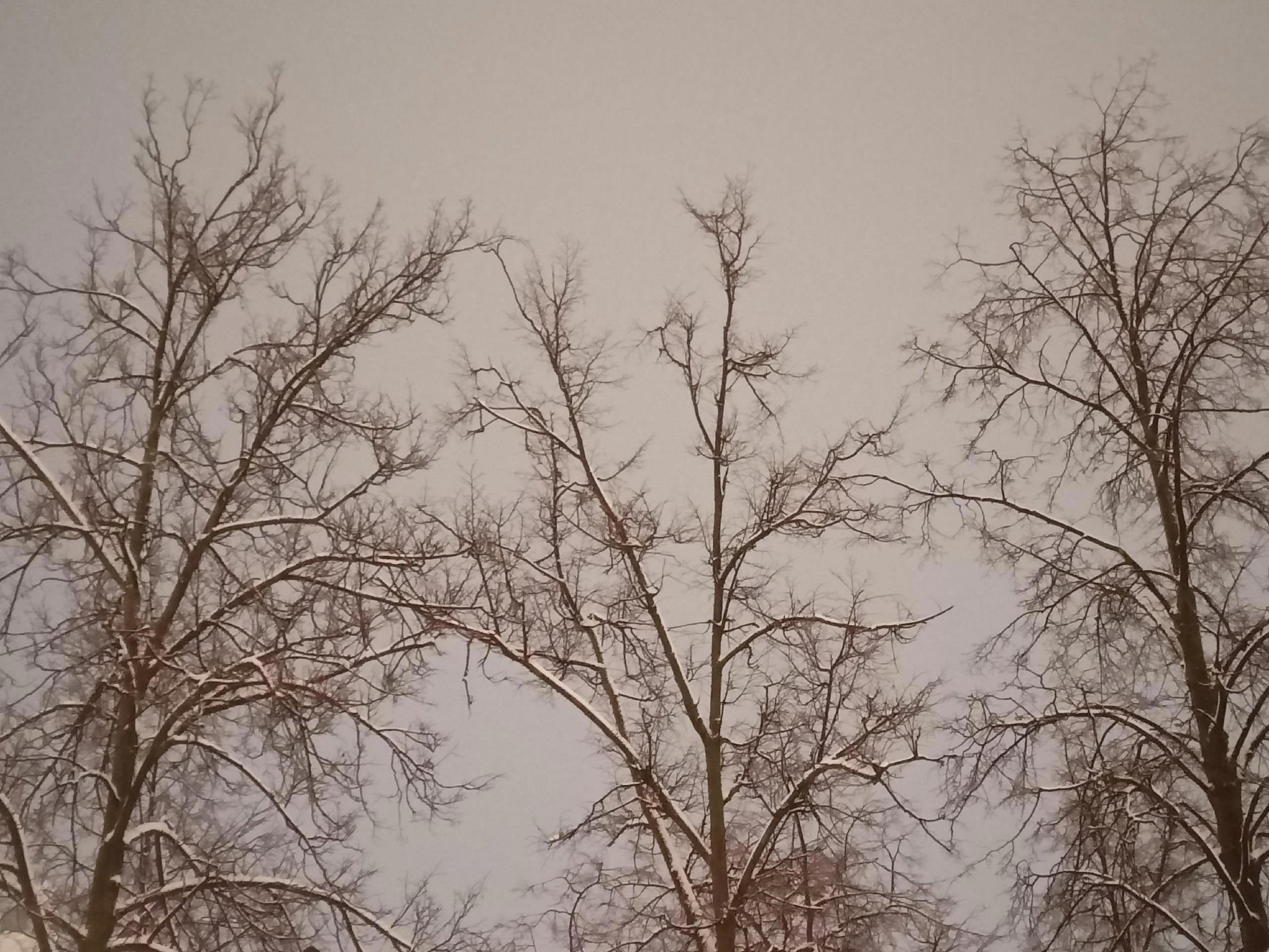 Чёрные липы на розовом городском небе. Солнце опять сегодня взял выходной. Велела наша звезда засыпать Урал снегами. А мы не против.