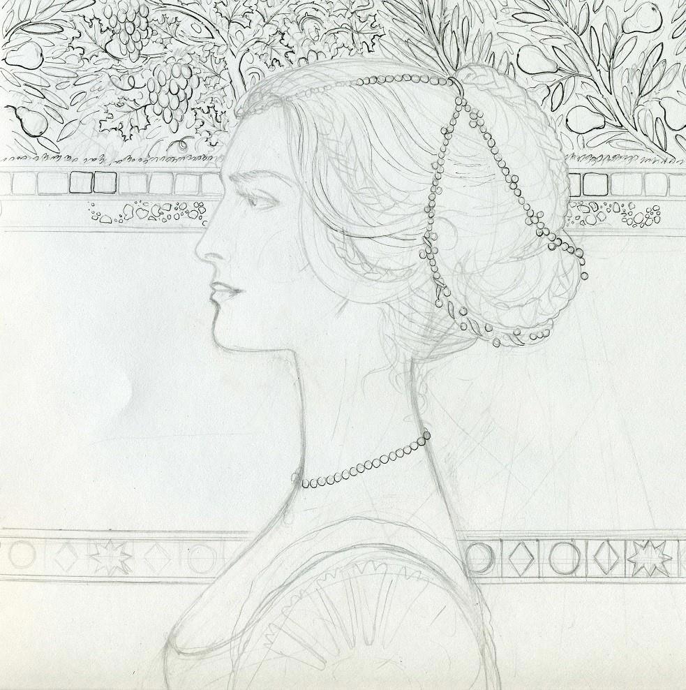 Итак, красивый эскиз номер раз – портрет Юлии, многолетней конкубины Лео и матери его старших сыновей. Вот такая возрожденческая матрона получилась) Вот здесь чуть подробнее)