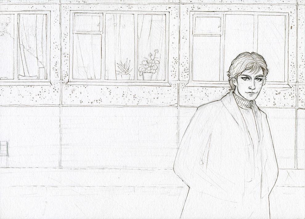 И номер три – слегка вампирская (да-да!) картинка про кого-то, весьма похожего на Вольфи, с вайбами питерской окраины. Тоже тот случай, когда я понимаю, что хочу, но не разумею, как – не хватает мастерства.