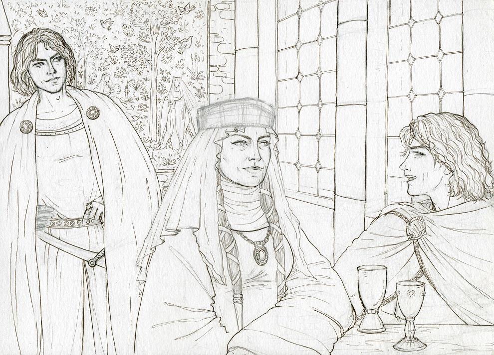 Красивый эскиз номер два – Анастази и ее сыновья, самый старший, Эрих, и самый младший, Дитмар. Получилось так, что по итогу всех ее приключений именно с ними из всех своих детей она была ближе всего – и, несомненно, это ее хорошо так бодрило в довольно одиноком бытии)