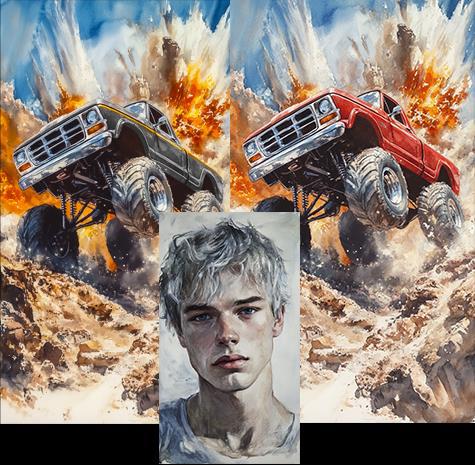 Антон Ярыгин рассказал очень трагичную историю простых людей в непростых обстоятельствах. https://author.today/work/414119 Есть расхождения с иллюстрацией. Для будущего конкурса (спойлер) так не годится.) Но у нас "Свободный Код" и рассказ очень хороший... Задача не простая затолкать сюжет в одну обложку.) Пришлось провести лакокрасочные работы автомобилю. Очень дорогая сегодня услуга.) Чтобы иллюстрация из сборника не противоречила с содержанию, пришлось сделать другую. Больше так не делайте.)