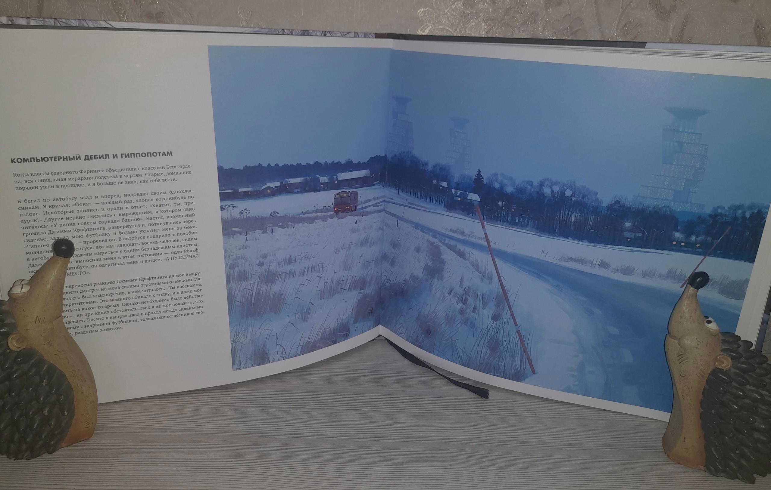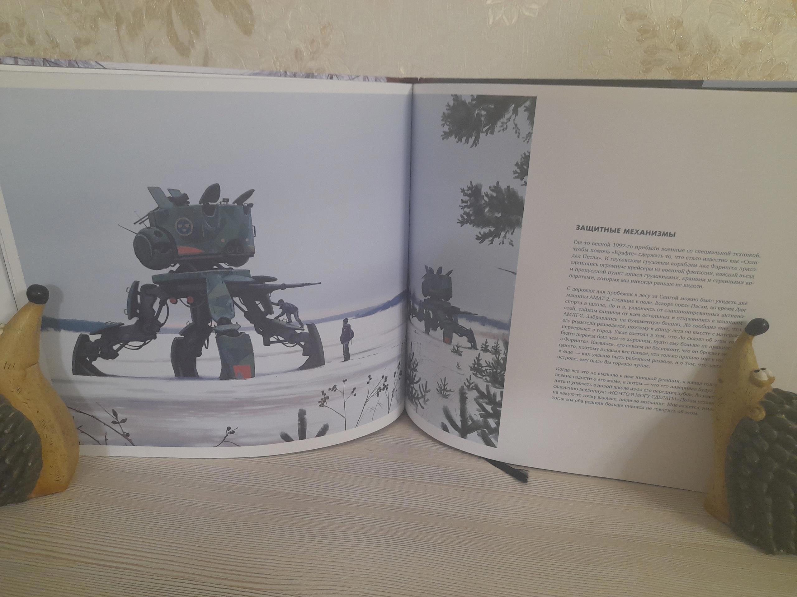 Рисунки реально шедевральны, от забытых полигонов, до роботов, небоскрёбов, улиц и так далее. Очень красиво и дух 90-х годов ХХ века передан шикарно. Чисто из-за рисунков я вообще в руки книгу взял. Ибо всё остальное в виде куцего приложения-пояснения текста про мальчика героя книги и для того, чтобы как-то рисунки объединить в сюжет, честно говоря маловато будет и читается странно. Ерунда какая-то. Но вот именно рисунки шикарны, и если брать книгу, то исключительно как графический каталог картинок.