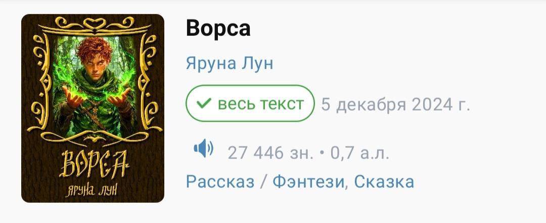 Второе место: Януна Лун – «Ворса». (Ссылка на книгу - https://author.today/work/399066).