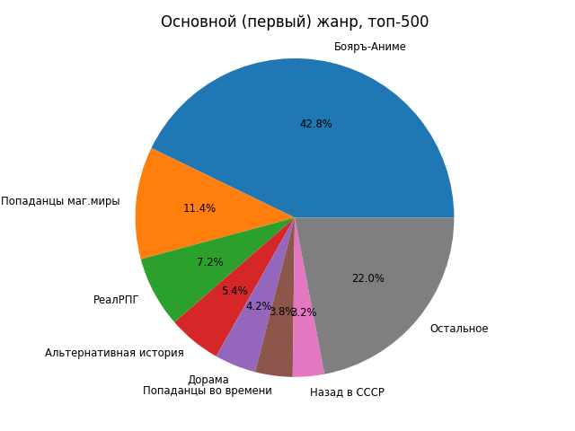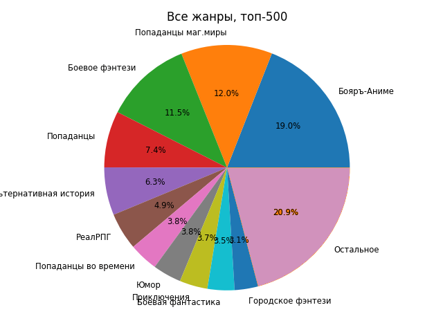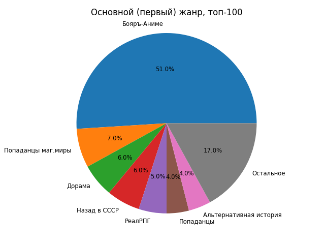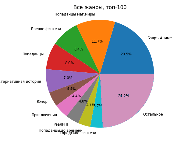 Информация собирается исходя из поисковой выдачи АТ, отсортированной по популярности за месяц: https://author.today/work/genre/all?rp=month&eg=-&fnd=false&page=1 (все фильтры были специально отключены).