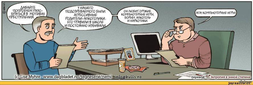 И последнее. Размышляла я тут над идеей романа (ну надо, надо уже переходить к крупной форме!). Я уже тут как-то озвучивала идею: приходит в некую контору красотка-практикантка, и трое коллег начинают соперничество за неё. А дальше интриги, любовь-морковь, чутка мистики и т.д., и т.п. И вот на днях думала я, где именно, на каком предприятии всё это будет происходить. Сначала думала про радиостанцию (там работали... не совсем прототипы, но люди, натолкнувшие на эту мысль), потом про что-то промышленное, потом — про большую купи-продайную офисную компанию (это хороший вариант, потому что она, с одной стороны, многим понятна, с другой — почти безлика, туда что угодно запихать можно). А потом меня осенило: пиши, про что знаешь! А что я знаю хорошо? Так наш, родненький-посконный геймдев, в котором я уже одиннадцать лет варюсь! Ну и что мешает этой истории случиться в студии разработки игр? Ничего! В общем, решено: роман будет не только про всякие-разные коллизии между героями, но и немножко про то, как работает и чем живёт игровая студия. Что за погромисты такие делают эти ваши компьютерные игры, от которых люди с ума сходют и жестокими становятся!..