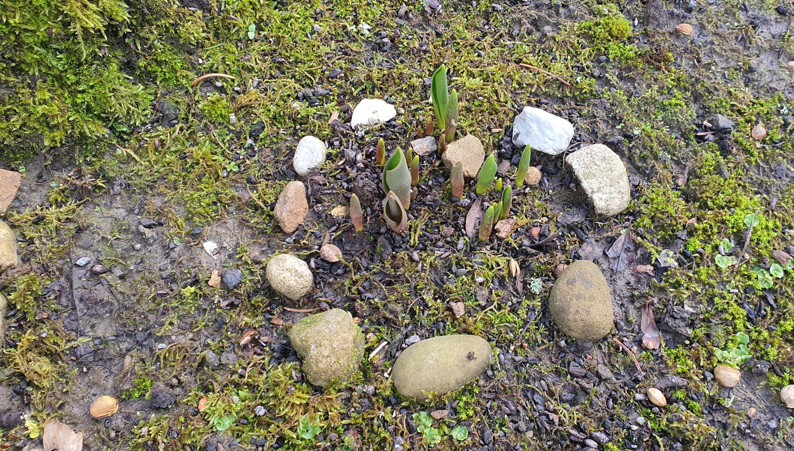 Травка цветущая белыми цветочками, как оказалось, тоже уже проклюнулась.
