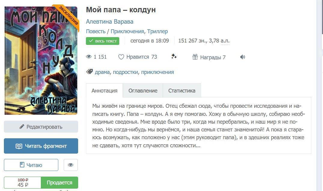 Повесть "Мой папа — колдун" дописана, считаю, что шалость удалась)