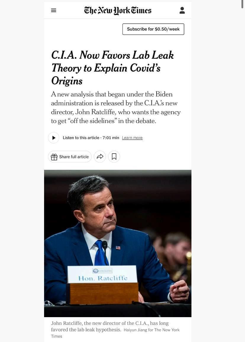Новый директор ЦРУ заявил, что COVID-19, вероятнее всего, распространился из-за утечки в лаборатории Уханя! Не прошло и пяти лет, чтобы они признали давно всем очевидное! И вообще, о работе они думают ничуть не больше нас с вами!