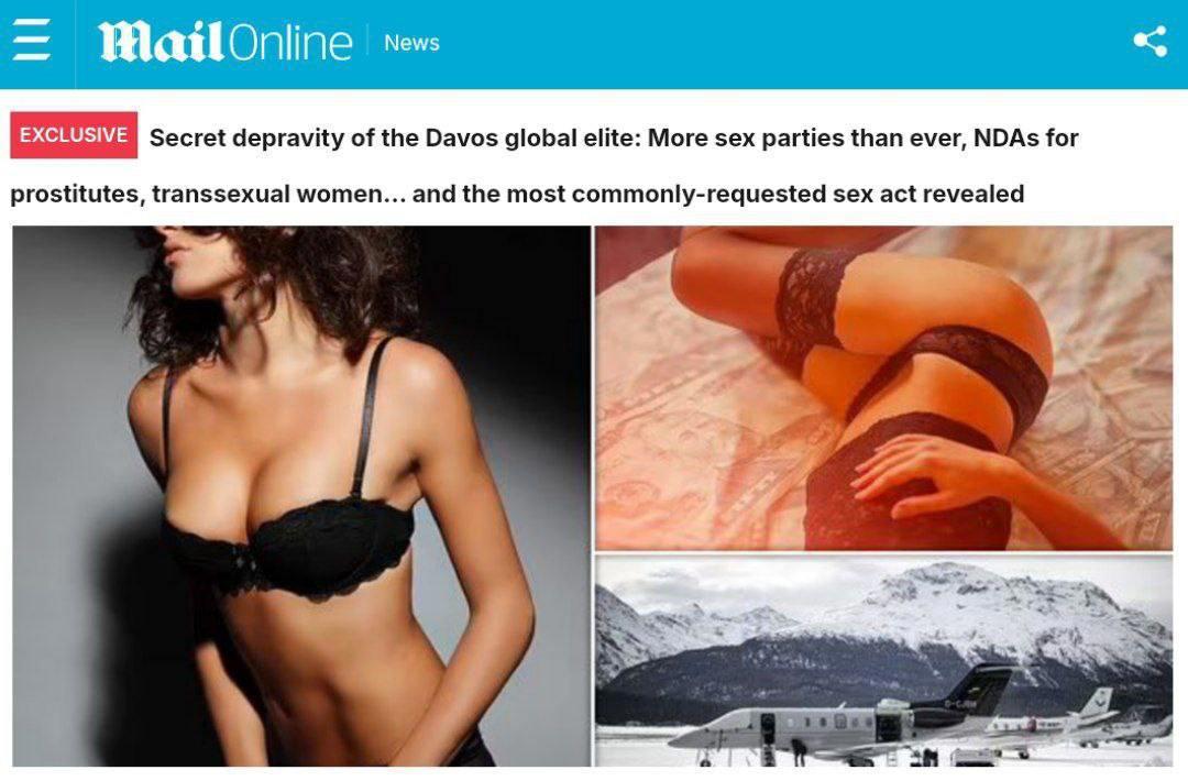 Во время Всемирного экономического форума в Давосе значительно увеличился спрос на эскорт-услуги и секс-вечеринки! Видимо, не с кем было обсуждать вопросы экономики в свободное от работы время! Все их рассказы нужно делить на два и сохранять чувство юмора, а не это вот всё!