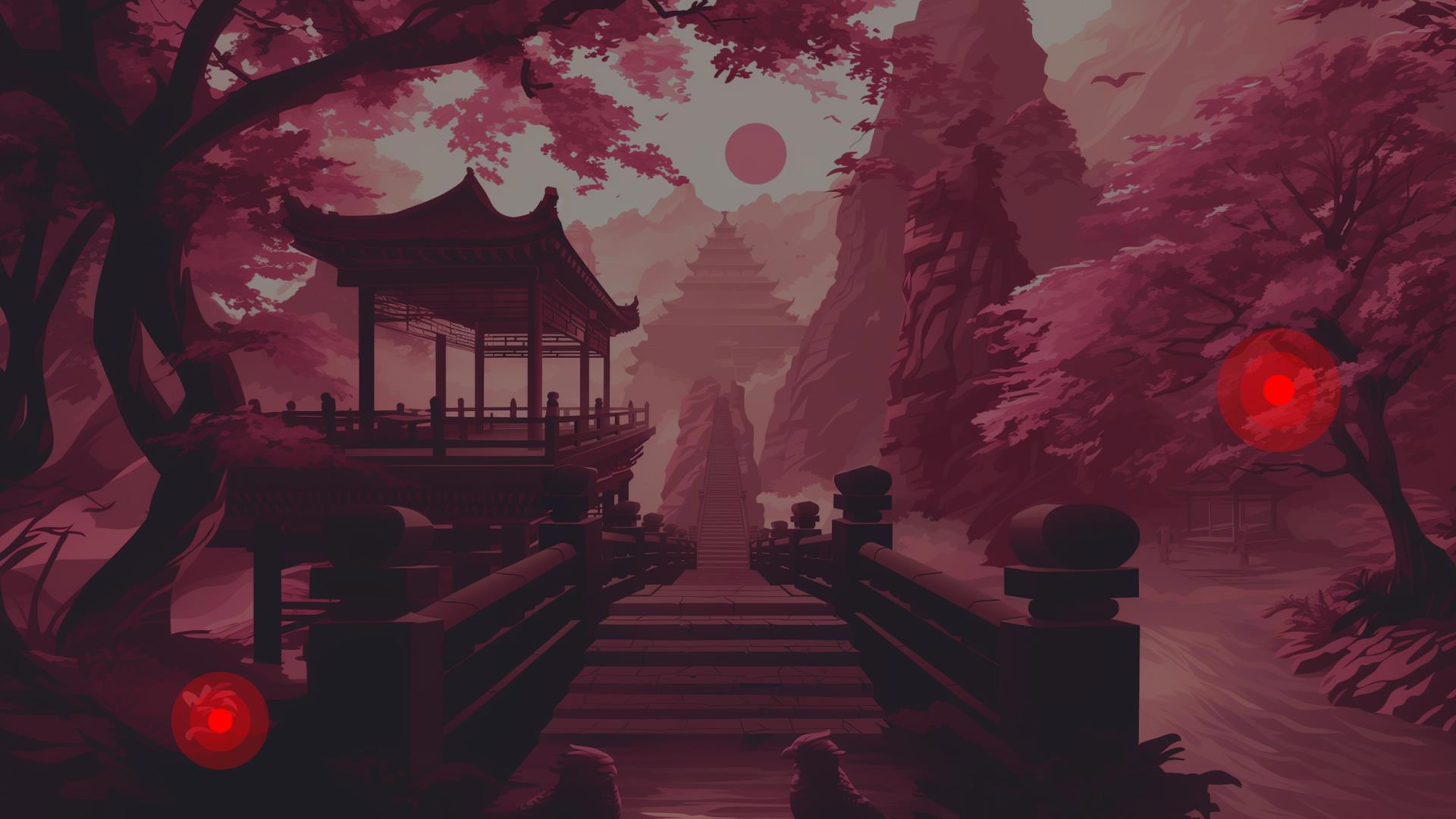 Природа тут погружена в глубокий розово-бордовый полумрак, словно сама ночь впитала в себя цвет пышных сакур и наполнила цветочным ароматом любви сладострастную ночь. Туманная дымка стелется меж гор, скрывая очертания строения в китайском стиле. Оно словно растворяется в малиновом свете. Перилы, колонны и изящая крыша видны только если на них падает нежный свет пурпурных сфер любви. Одарованные странным сторожем леса, что встречает всех путешественников, они приносят их с собой. Сферы парят среди деревьев, будто проблески древней магии, и наполняют всё вокруг таинственным шёпотом. Алые тени повторяют одну и ту же историю вечности, но каждый сол рассказывают новую историю любви, что разворачиваются тут каждую ночь, когда наивные путешественники набредают на этот скрытый в джунглях дом удовольствий.