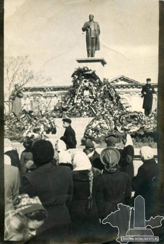 После освобождения Крыма, в 1949 году здесь установили памятник И. Сталину.