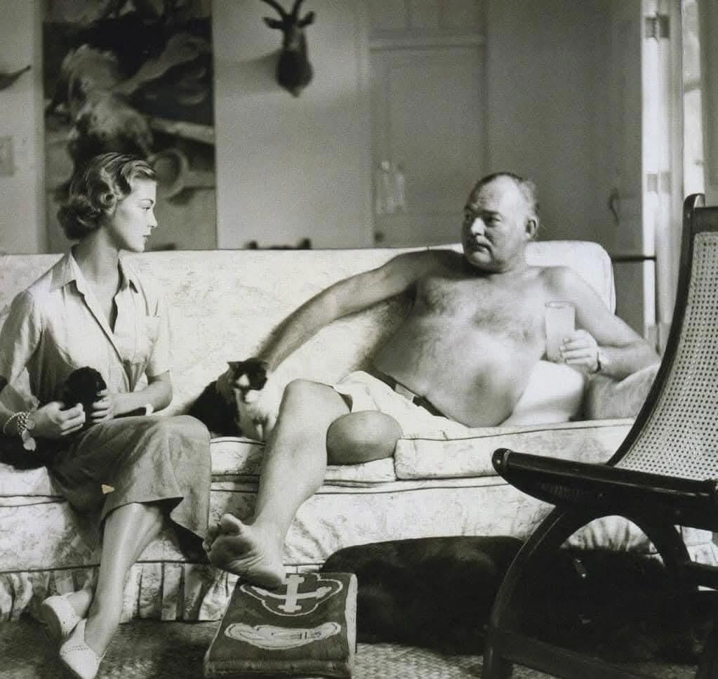 Фото: Эрнест Хемингуэй и модель Джин Пэтчетт, 1950 год. Съемка для журнала Vogue.
