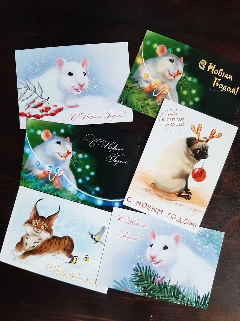 Всем привет). Наконец-то у меня нарисовались в этом году открытки к Новому Году белого мышА. Помимо милых мышей, а скорее всего Крысуль, есть вариант с Пёселем и Рысенком. Открытки односторонние- оборотная сторона- чистое поле для вашего творчества и искренних и теплых пожеланий. Стоимость одной-100р. Набор из трех штук-280р, последующие-50р. Отправка почтой России в районе 150р. Предложение действительно до 16 декабря включительно. По всем вопросам-обращайтесь в ЛС).