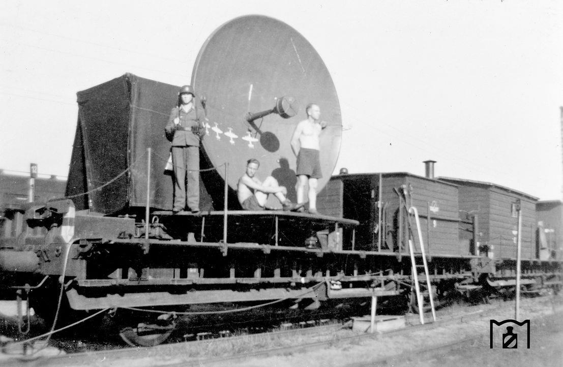 Радар на железнодорожной платформе. На счету 4 сбитых самолета. 1942 год. Частное фото.