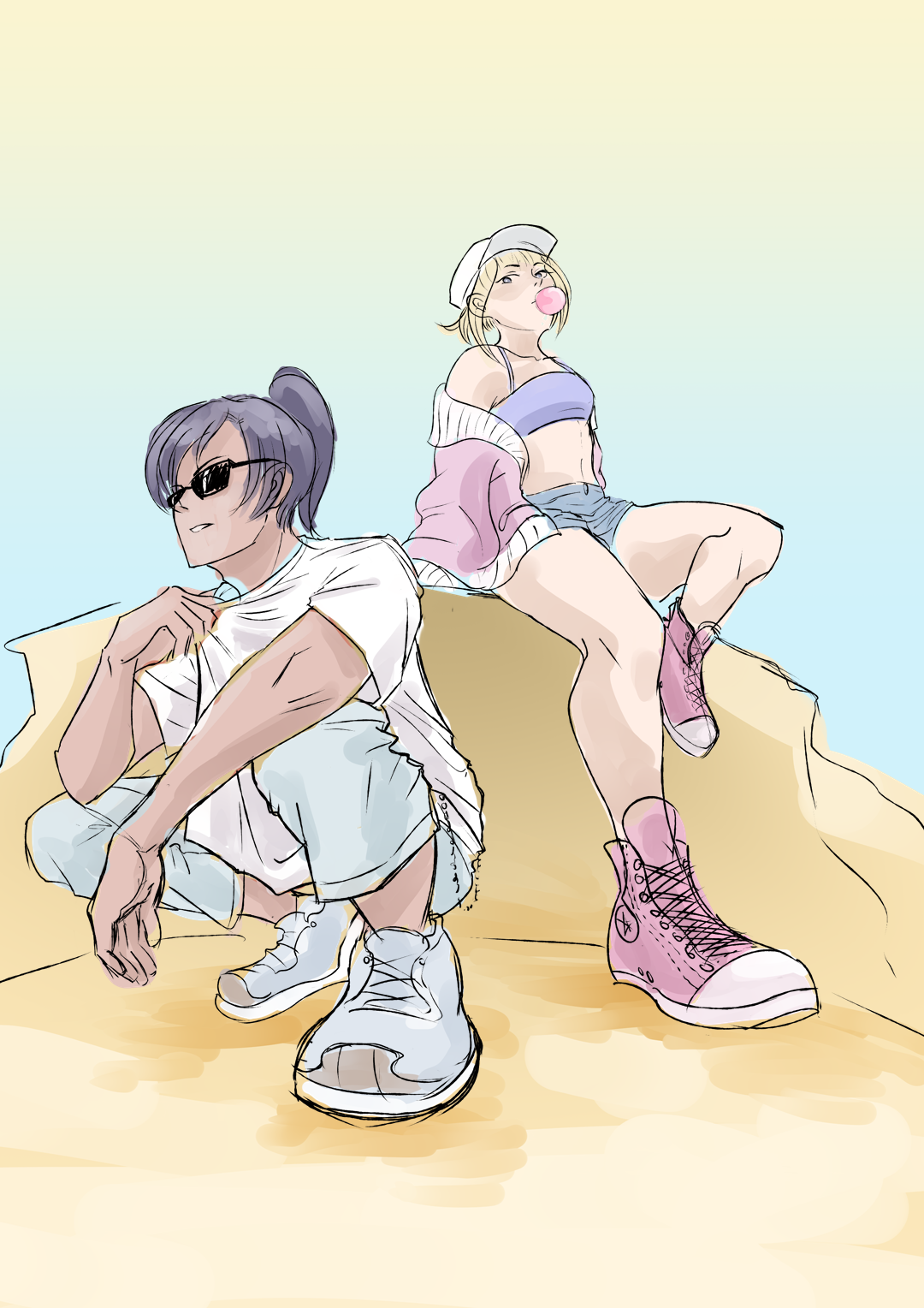 В "Городе на драконе" во второй главе герои застревают на скале в пустыне. На самом деле они там дерутся (в этой истории удивительно много драк), а не стильно позируют.