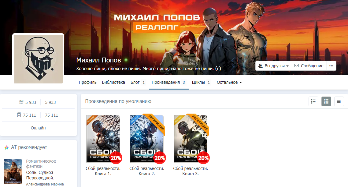 Ссылка для всех заинтересованных: https://author.today/u/popovmikhaildhg/works?view=tile&sorting=default