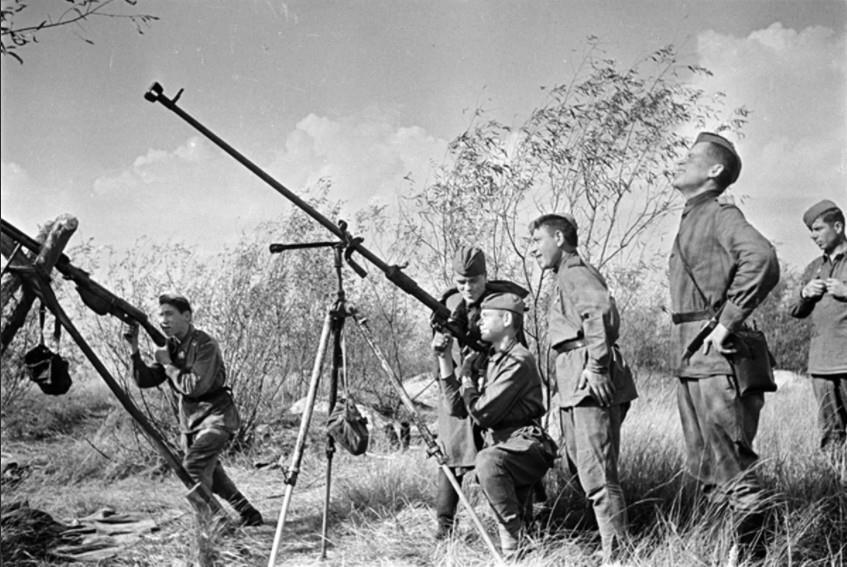 Использование противотанковых ружей (ПТРД и ПТРС) для зенитной стрельбы.