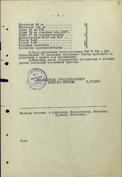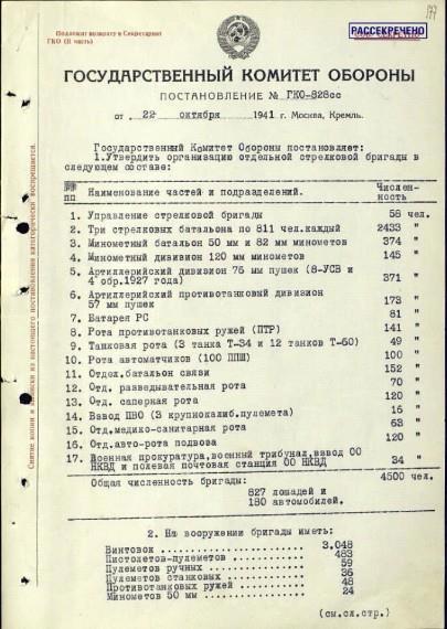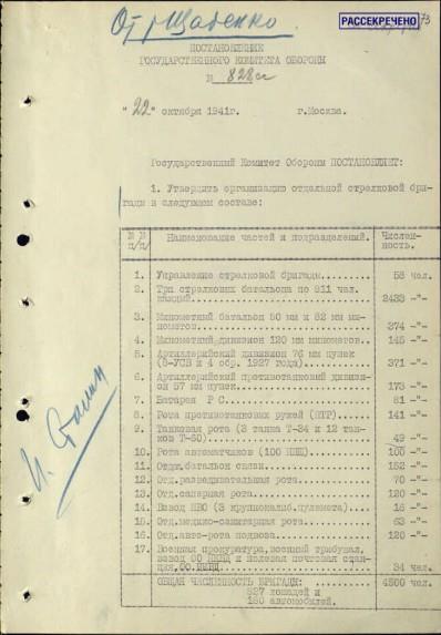 К 28.10.1941 г. сформировать 50 отдельных стрелковых бригад, согласно прилагаемого штатного расчета.