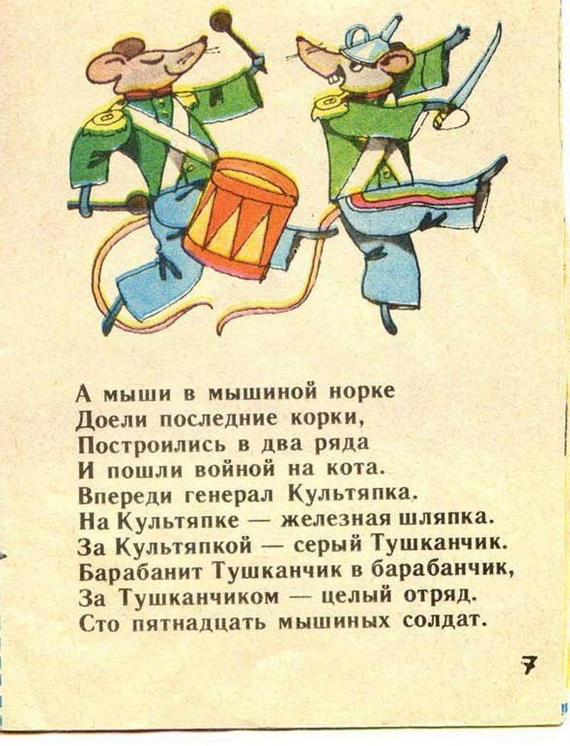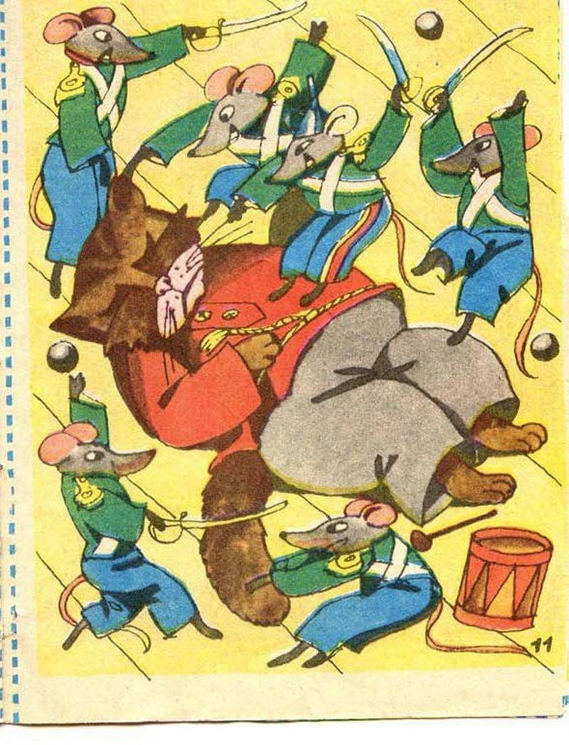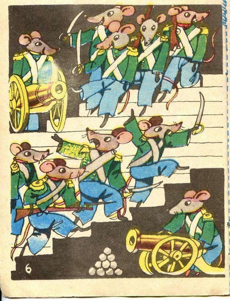 В общем, уважаемые и обожаемые, смех смехом, грех – грехом, будьте аккуратнее и не сильно смейтесь, рассматривая далее приложенную версию ужаснейшего детского тёмного фэнтези времён позднего Союза, фэнтези с человекоподобными грызунами, войсковой операцией, базисом существования паразитической популяции фурри и ваще – всю жестокотость… жестокость «Как мыши с котом воевали» Николая Заболоцкого и иллюстрации Эдуарда Гороховского.