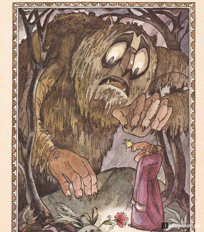 «Аленький цветочек» Аксакова, чьего героя любой иллюстратор приводил к внешности страхолюда, годного к освежеванию Геральтом.