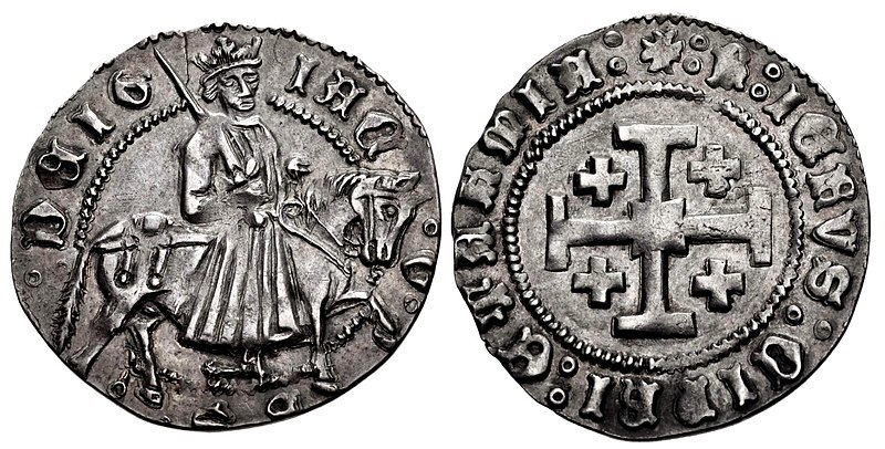 Монета выпущена давным давно, королём Кипра Жаком II из рода Лузиньянов, потомков доблестного рыцаря Раймонда и феи Мелюзины.
