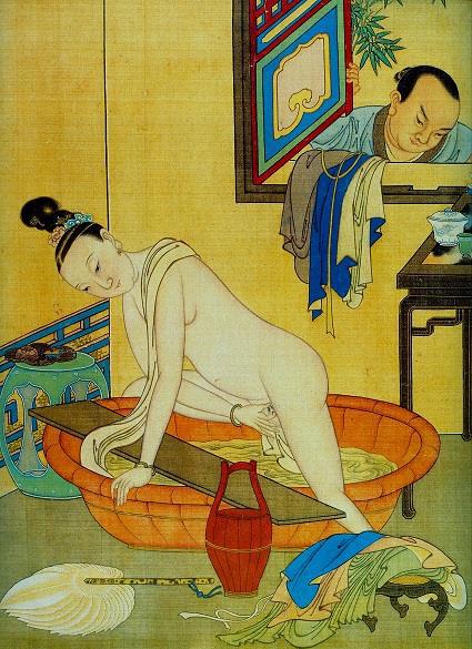 А вот красавица в понимании китайца - это целый конгломерат вещей: от искусной прически, дорогих шпилек, умелого макияжа до тщательно подобранного сочетания тканей платья. Сочетаться должно всё со всем, и более того - сама красавица должна гармонировать с окружающими её вещами и даже ... пейзажем. Сиречь, элемент любования красотой или входит составной частью в эротизм китайца, либо даже превалирует в нём. Голая женщина не может быть красива...