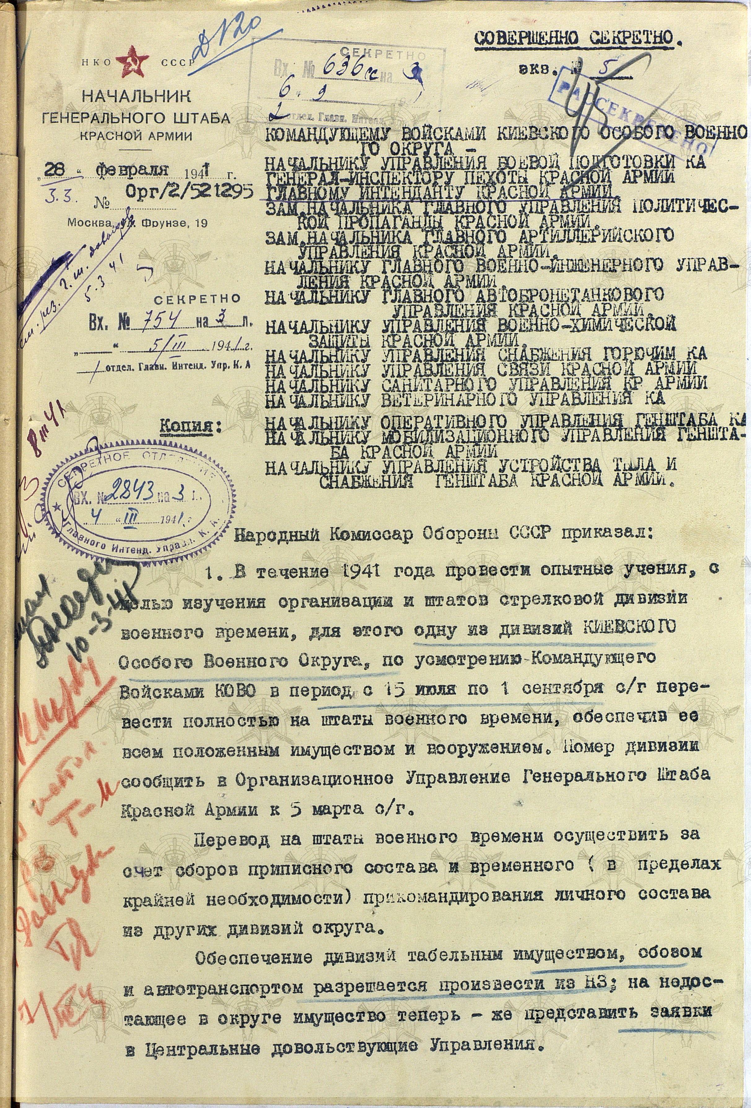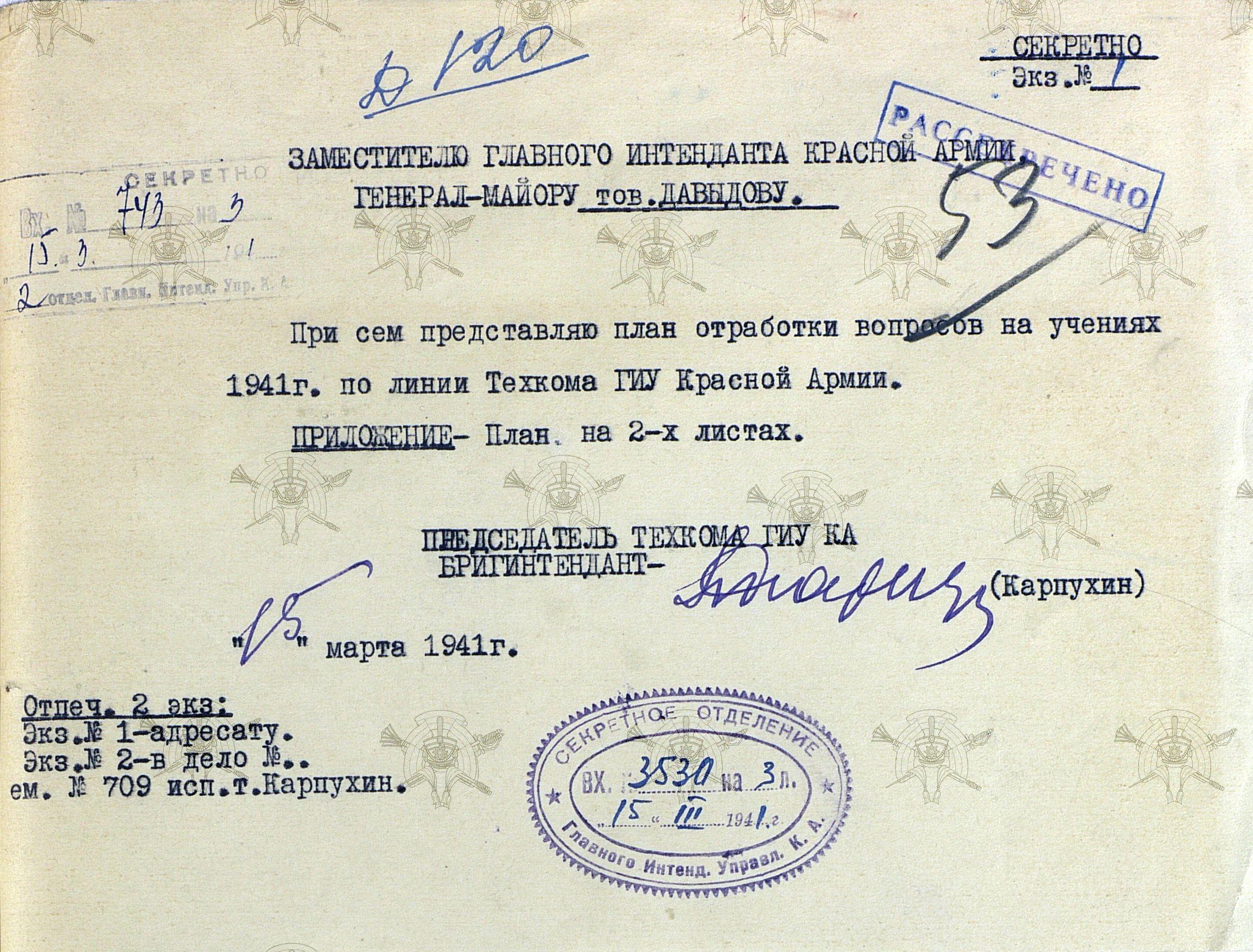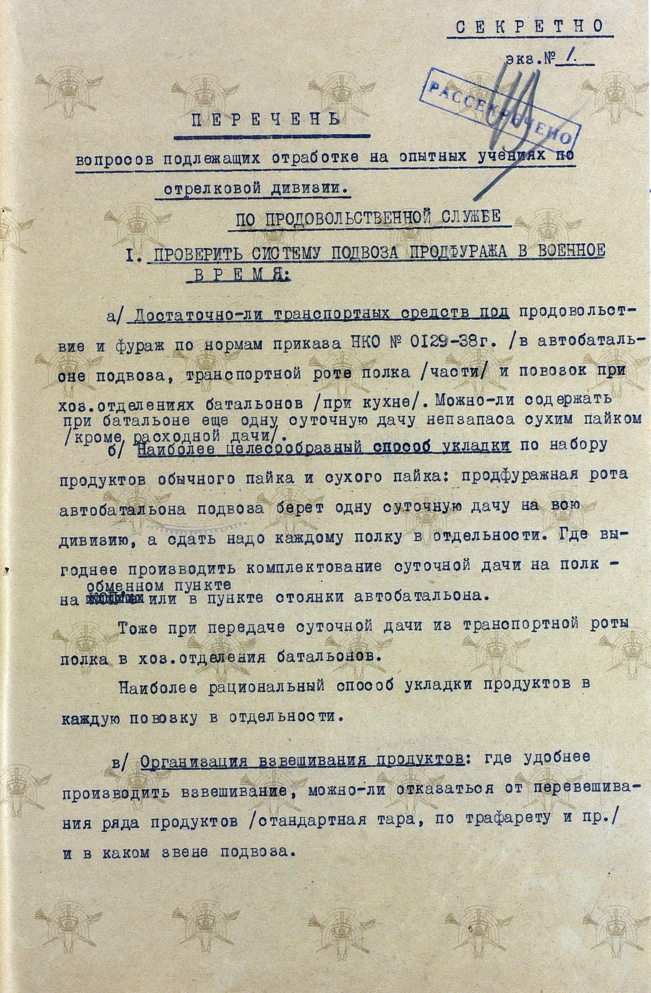 Начнём с указаний начальника Генерального штаба КА об организации учений в 1941 году. Обратите внимание, на то, какую роль отводит Генштаб работе всех звеньев тыла: