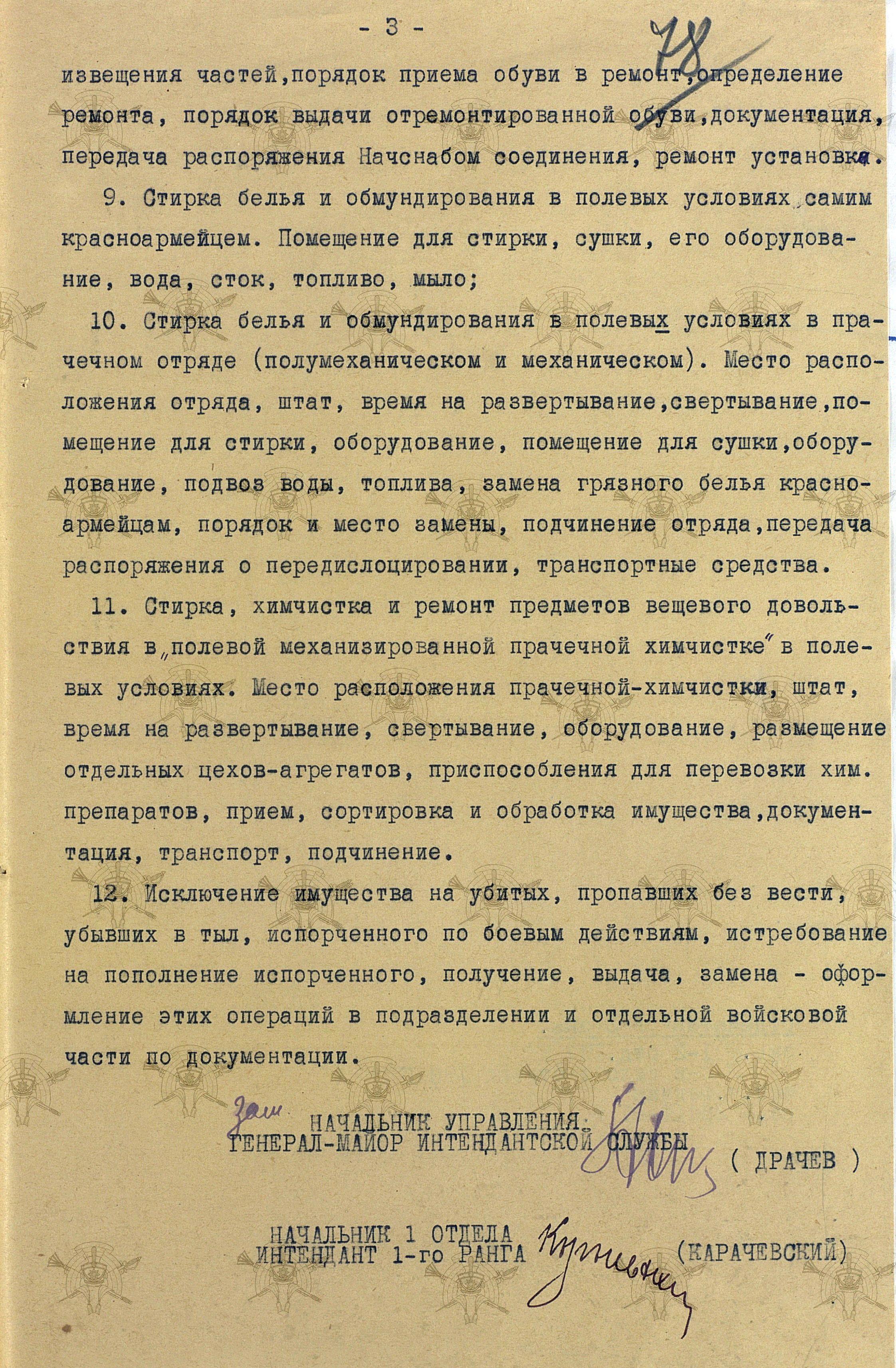 Вещевая служба отслеживала выполнение своих задач, концентрируя усилия не только на разгрузке бойца, изменения его обмундирования, обуви и снаряжения, но и не организации ремонта, стирки и химчистки.