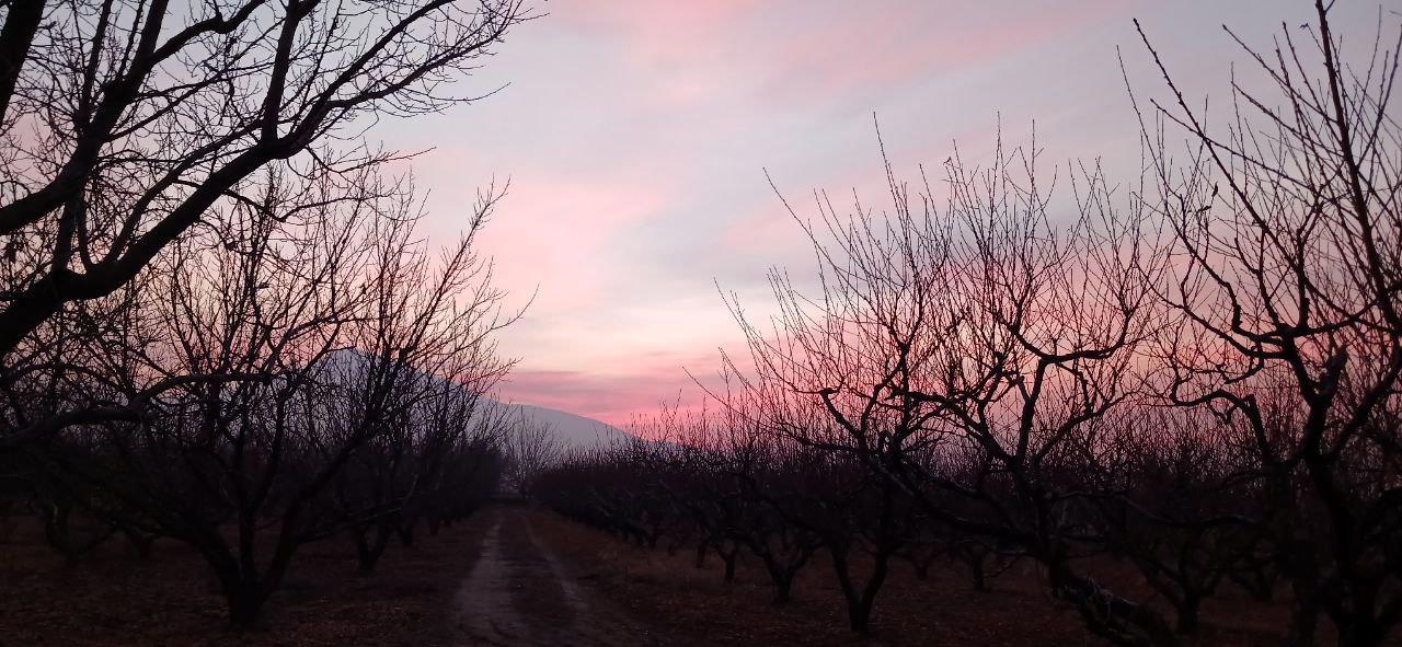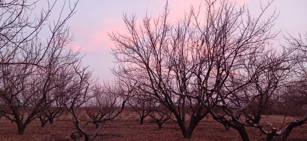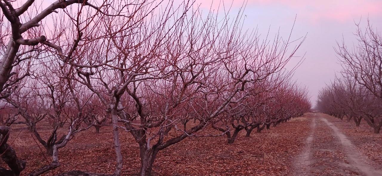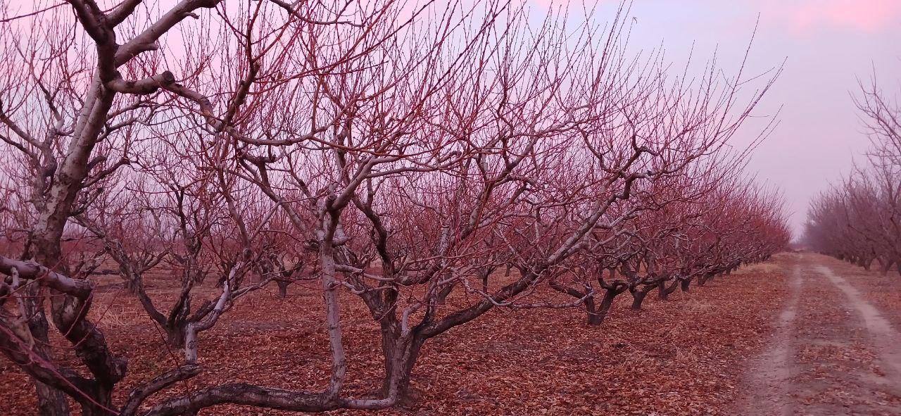 Фруктовый сад. Скорее всего, абрикосы или персики.